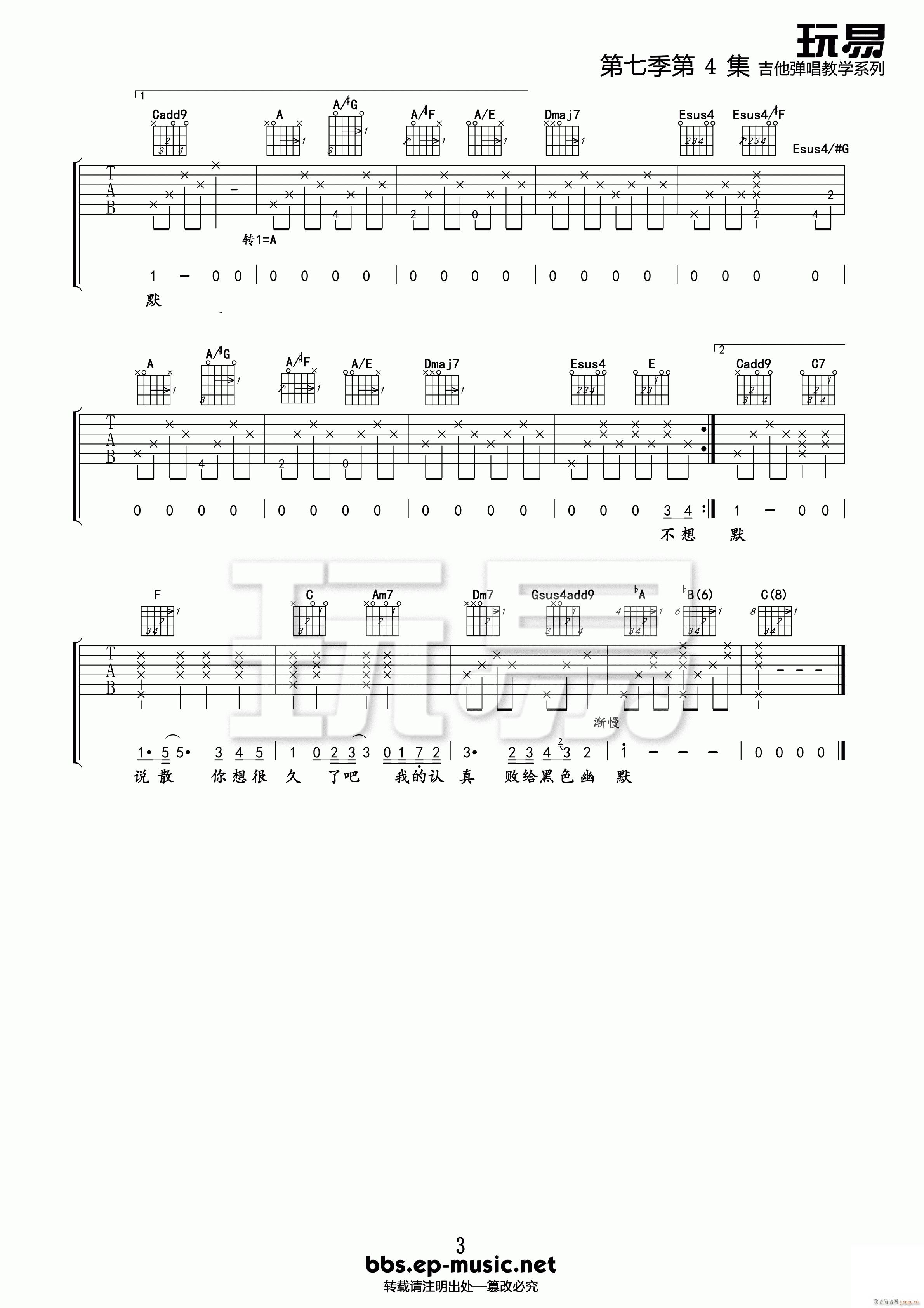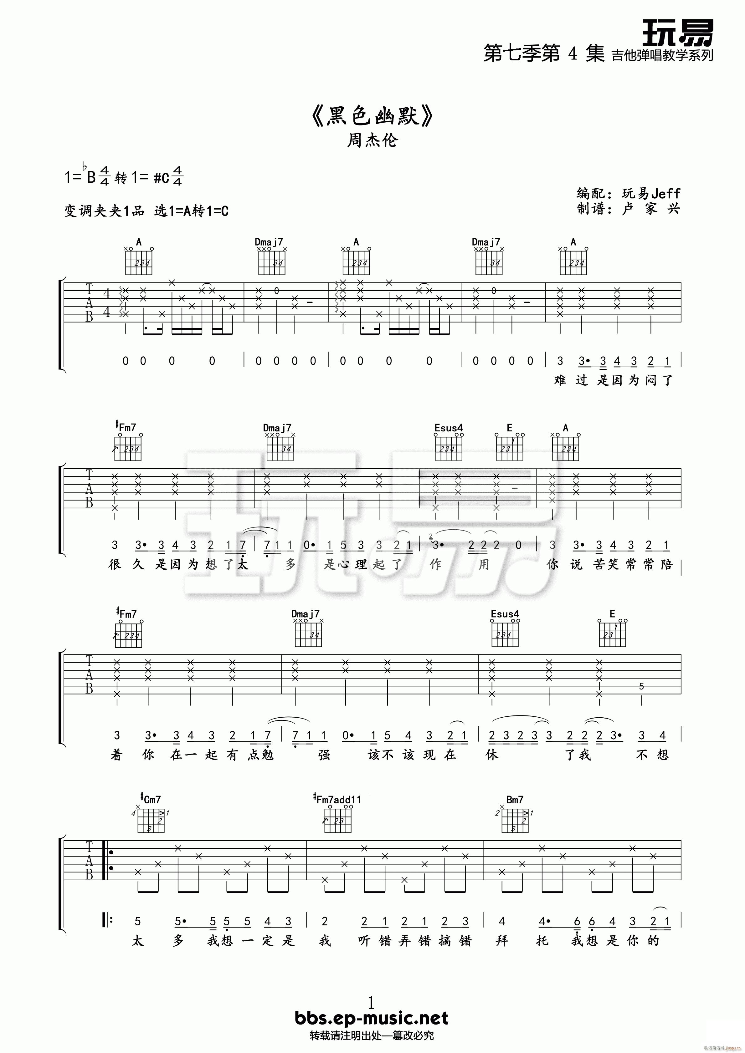 公众号:绵羊乐谱 黑色幽默 ( A调原版编配) 免费弹唱吉他谱_六线谱/词曲:周杰伦 点击: (玩易吉他) 公众号:绵羊乐谱 | 官方QQ群:978773290 不吃独食,学会分享!本文链接:http://www.shaomingyang.com/btb/33151.html 转载请标明出处,尊重原创(๑╹◡╹)ノ。如信息有误或版权疑问,请通过网站底部联系我们会第一时间处理,感谢理解支持(◕ᴗ◕✿)!