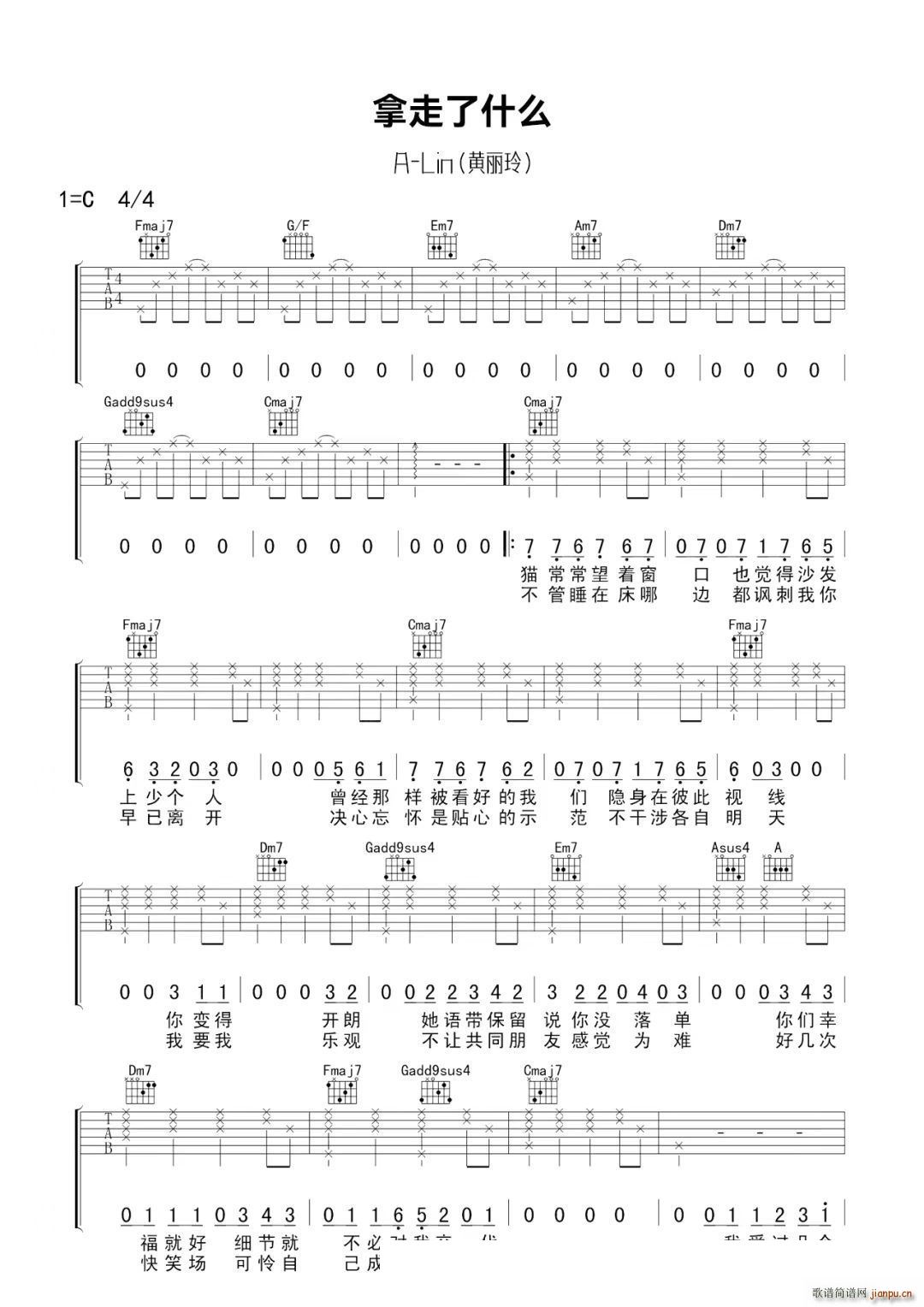 公众号:绵羊乐谱 拿走了什么 -C调 免费弹唱吉他谱_六线谱/词曲:Lin 点击: (吉他谱) 公众号:绵羊乐谱 | 官方QQ群:978773290 不吃独食,学会分享!本文链接:http://www.shaomingyang.com/btb/33159.html 转载请标明出处,尊重原创(๑╹◡╹)ノ。如信息有误或版权疑问,请通过网站底部联系我们会第一时间处理,感谢理解支持(◕ᴗ◕✿)!