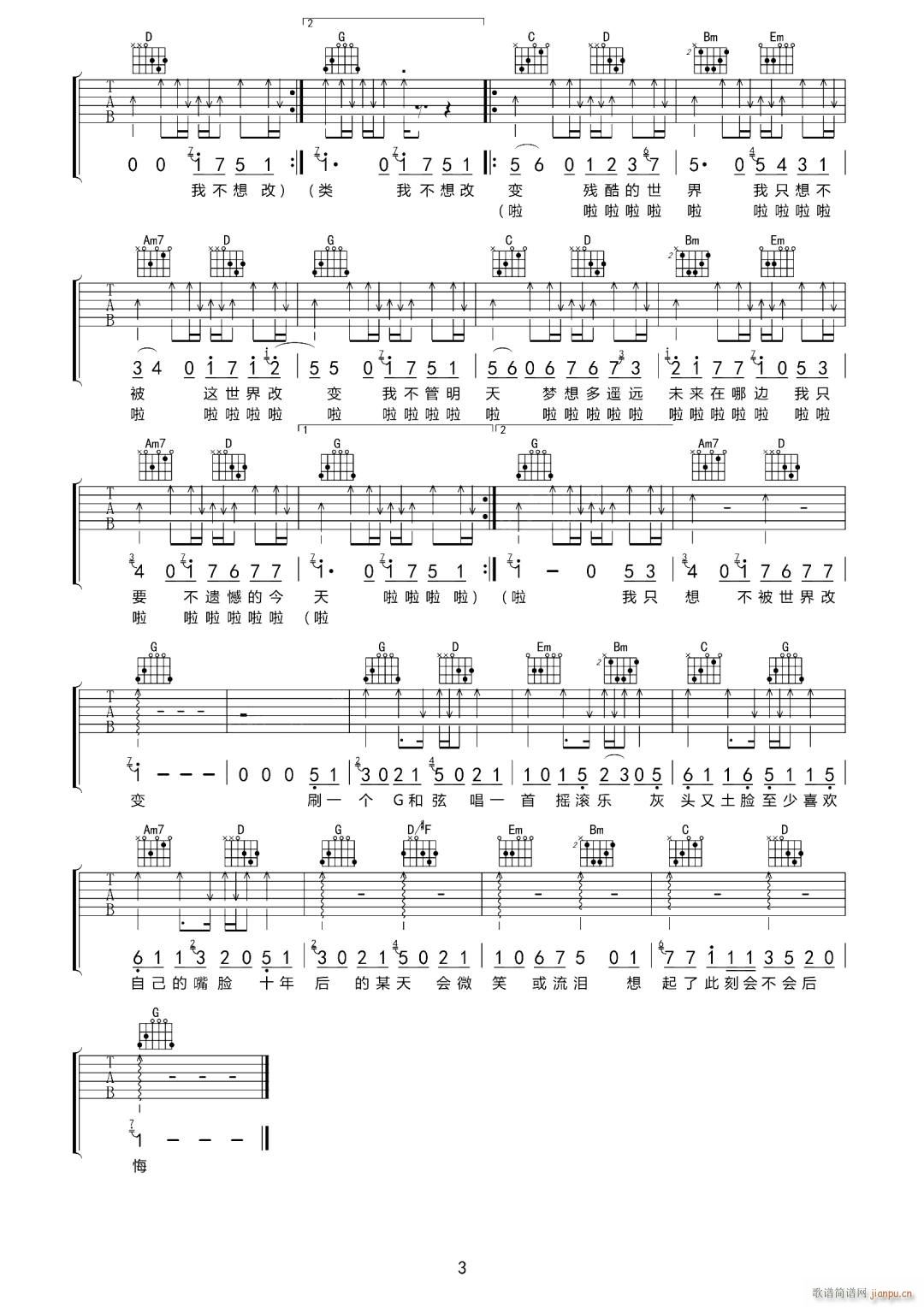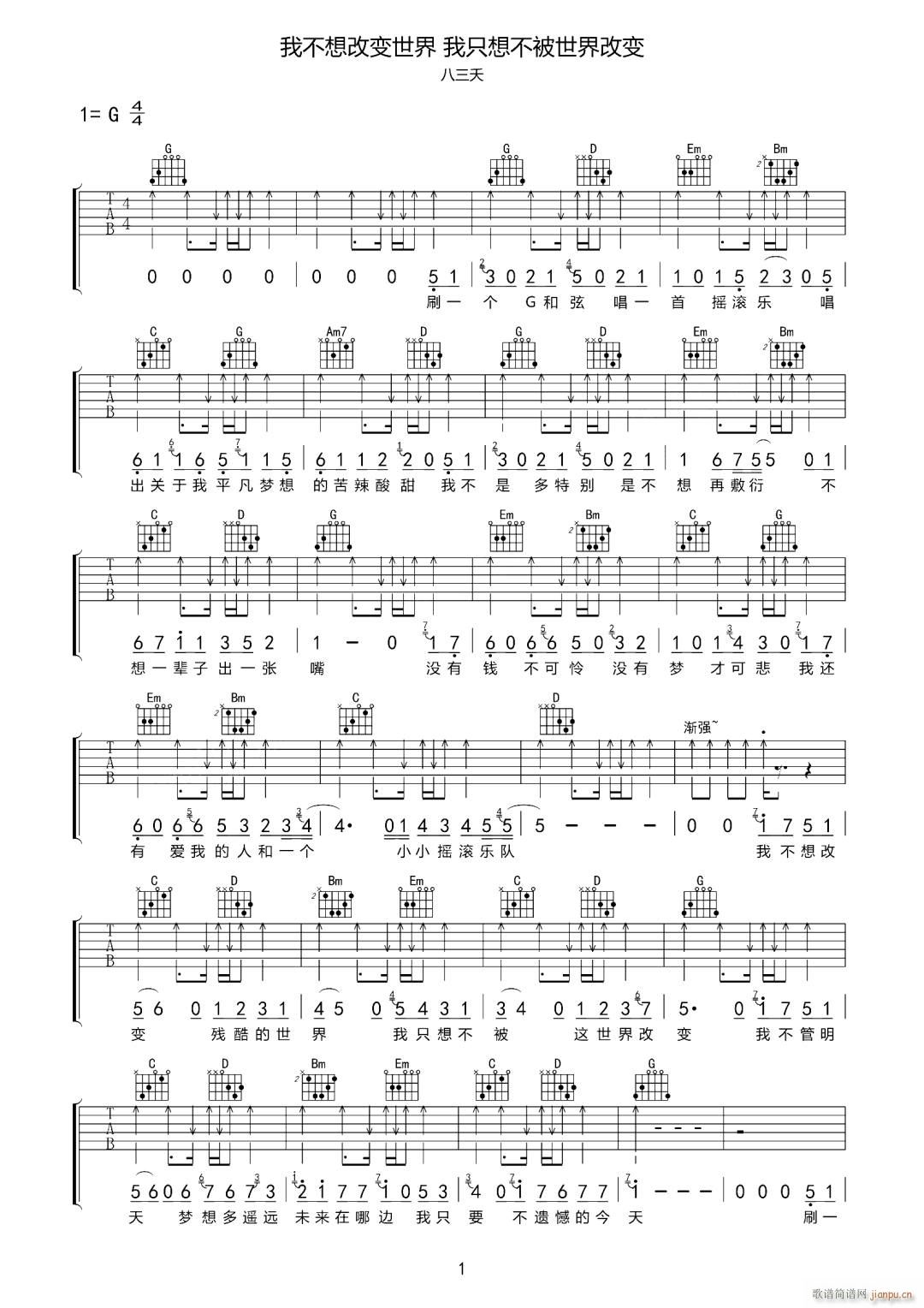 公众号:绵羊乐谱 我不想改变世界我只想不被世界改变 免费弹唱吉他谱_六线谱/词曲:八三夭 点击: (网络) 公众号:绵羊乐谱 | 官方QQ群:978773290 不吃独食,学会分享!本文链接:http://www.shaomingyang.com/btb/33205.html 转载请标明出处,尊重原创(๑╹◡╹)ノ。如信息有误或版权疑问,请通过网站底部联系我们会第一时间处理,感谢理解支持(◕ᴗ◕✿)!
