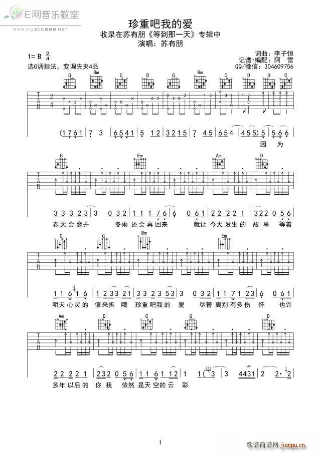公众号:绵羊乐谱 珍重吧我的爱-苏有朋免费弹唱吉他谱_六线谱/词曲: 点击: 1000 图片可能经过缩放,手机长按或点开后长按保存,电脑鼠标右键保存. (阿雪) 公众号:绵羊乐谱 | 官方QQ群:978773290 不吃独食,学会分享!本文链接:http://www.shaomingyang.com/btb/33208.html 转载请标明出处,尊重原创(๑╹◡╹)ノ。如信息有误或版权疑问,请通过网站底部联系我们会第一时间处理,感谢理解支持(◕ᴗ◕✿)!