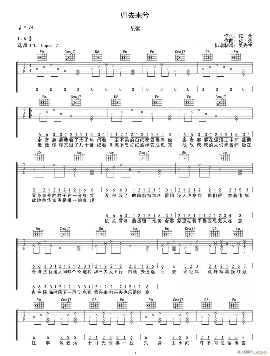 公众号:绵羊乐谱 归去来兮 ( G调指法原版编配) 免费弹唱吉他谱_六线谱/词曲:花粥 点击: (网络) 公众号:绵羊乐谱 | 官方QQ群:978773290 不吃独食,学会分享!本文链接:http://www.shaomingyang.com/btb/33259.html 转载请标明出处,尊重原创(๑╹◡╹)ノ。如信息有误或版权疑问,请通过网站底部联系我们会第一时间处理,感谢理解支持(◕ᴗ◕✿)!
