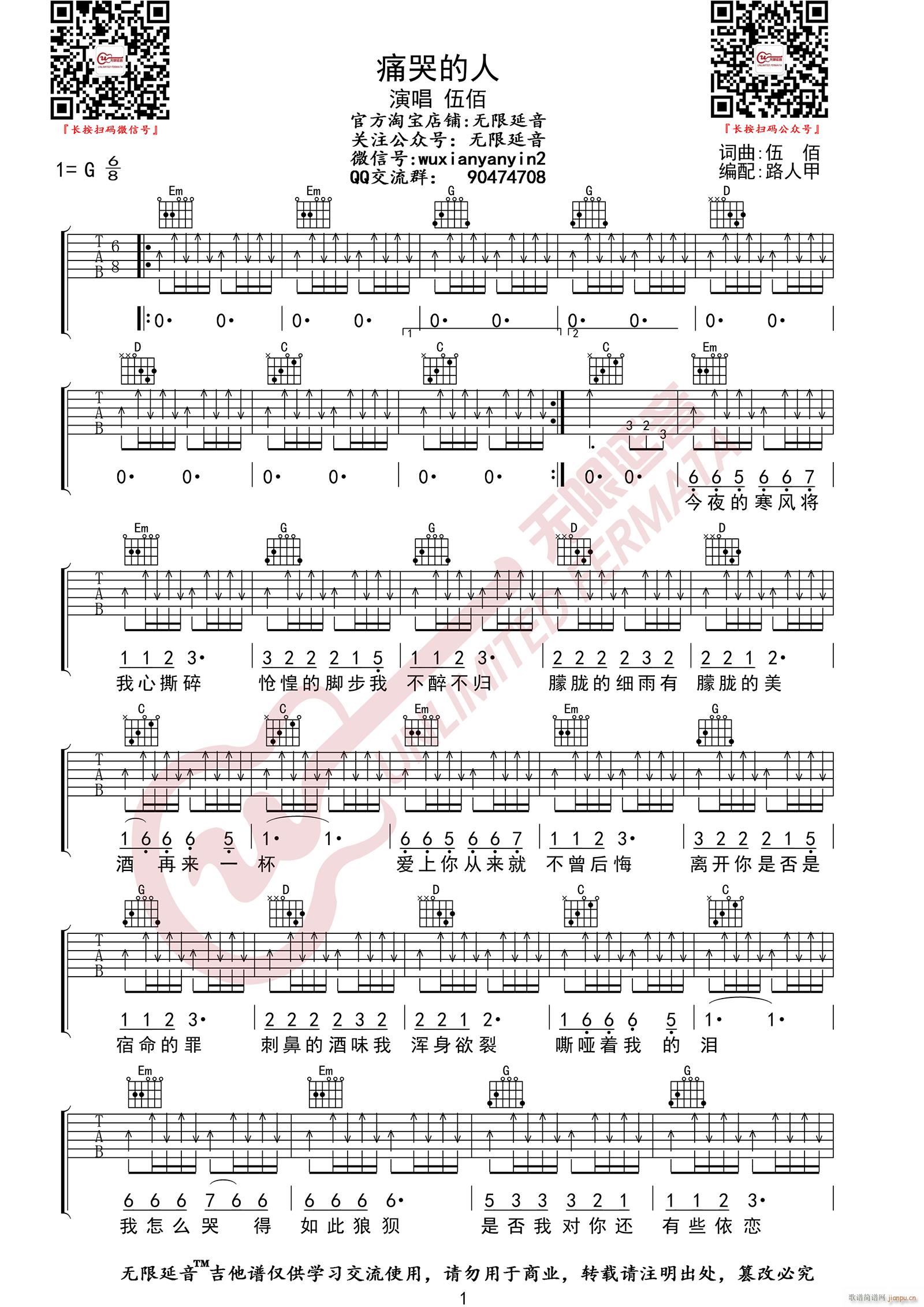 公众号:绵羊乐谱 痛哭的人 ( G调指法原版编配) 免费弹唱吉他谱_六线谱/词曲:伍佰 点击: (无限延音) 公众号:绵羊乐谱 | 官方QQ群:978773290 不吃独食,学会分享!本文链接:http://www.shaomingyang.com/btb/33261.html 转载请标明出处,尊重原创(๑╹◡╹)ノ。如信息有误或版权疑问,请通过网站底部联系我们会第一时间处理,感谢理解支持(◕ᴗ◕✿)!