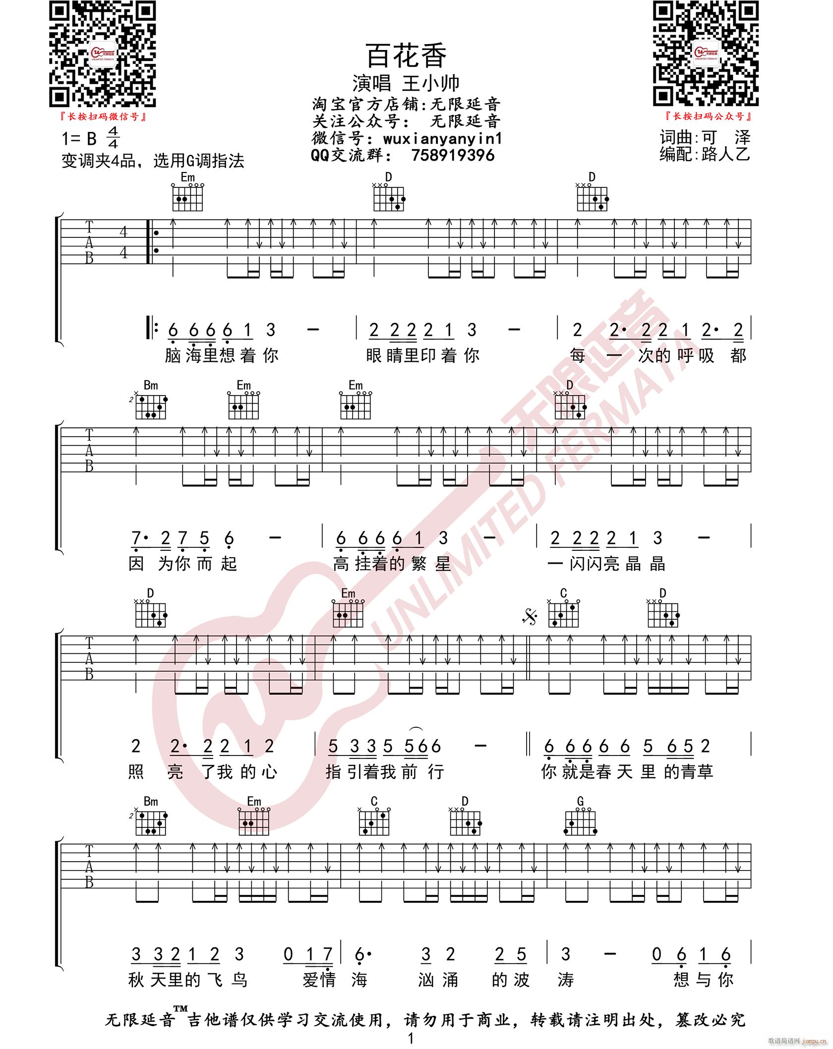 公众号:绵羊乐谱 百花香 ( G调扫弦版) 免费弹唱吉他谱_六线谱/词曲:王小帅 点击: (无限延音) 公众号:绵羊乐谱 | 官方QQ群:978773290 不吃独食,学会分享!本文链接:http://www.shaomingyang.com/btb/33269.html 转载请标明出处,尊重原创(๑╹◡╹)ノ。如信息有误或版权疑问,请通过网站底部联系我们会第一时间处理,感谢理解支持(◕ᴗ◕✿)!