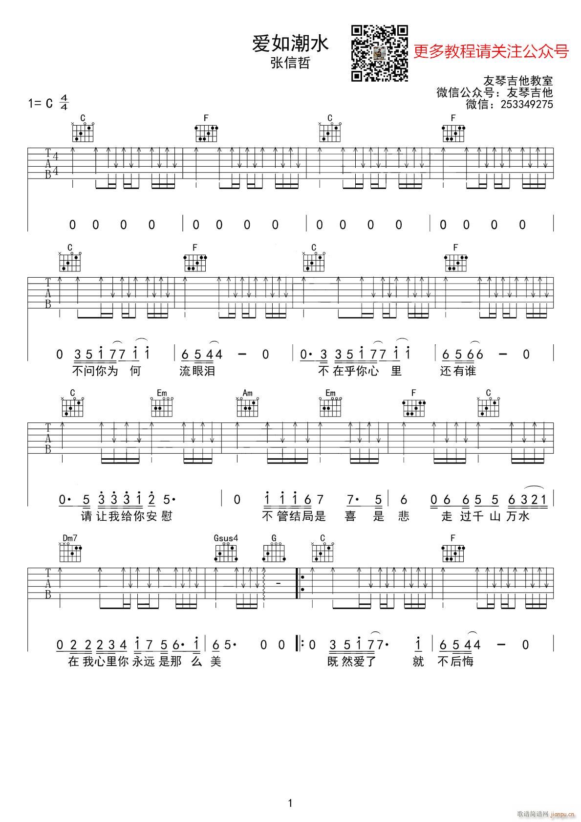 公众号:绵羊乐谱 爱如潮水 ( C调扫弦版) 免费弹唱吉他谱_六线谱/词曲:张信哲 点击: (友琴吉他) 公众号:绵羊乐谱 | 官方QQ群:978773290 不吃独食,学会分享!本文链接:http://www.shaomingyang.com/btb/33271.html 转载请标明出处,尊重原创(๑╹◡╹)ノ。如信息有误或版权疑问,请通过网站底部联系我们会第一时间处理,感谢理解支持(◕ᴗ◕✿)!