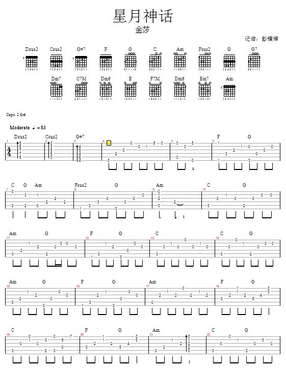 公众号:绵羊乐谱 星月神话—金莎免费弹唱吉他谱_六线谱: 点击: 1000 图片可能经过缩放,手机长按或点开后长按保存,电脑鼠标右键保存. (乐友pyhxwghgn传谱) 公众号:绵羊乐谱 | 官方QQ群:978773290 不吃独食,学会分享!本文链接:http://www.shaomingyang.com/btb/33282.html 转载请标明出处,尊重原创(๑╹◡╹)ノ。如信息有误或版权疑问,请通过网站底部联系我们会第一时间处理,感谢理解支持(◕ᴗ◕✿)!