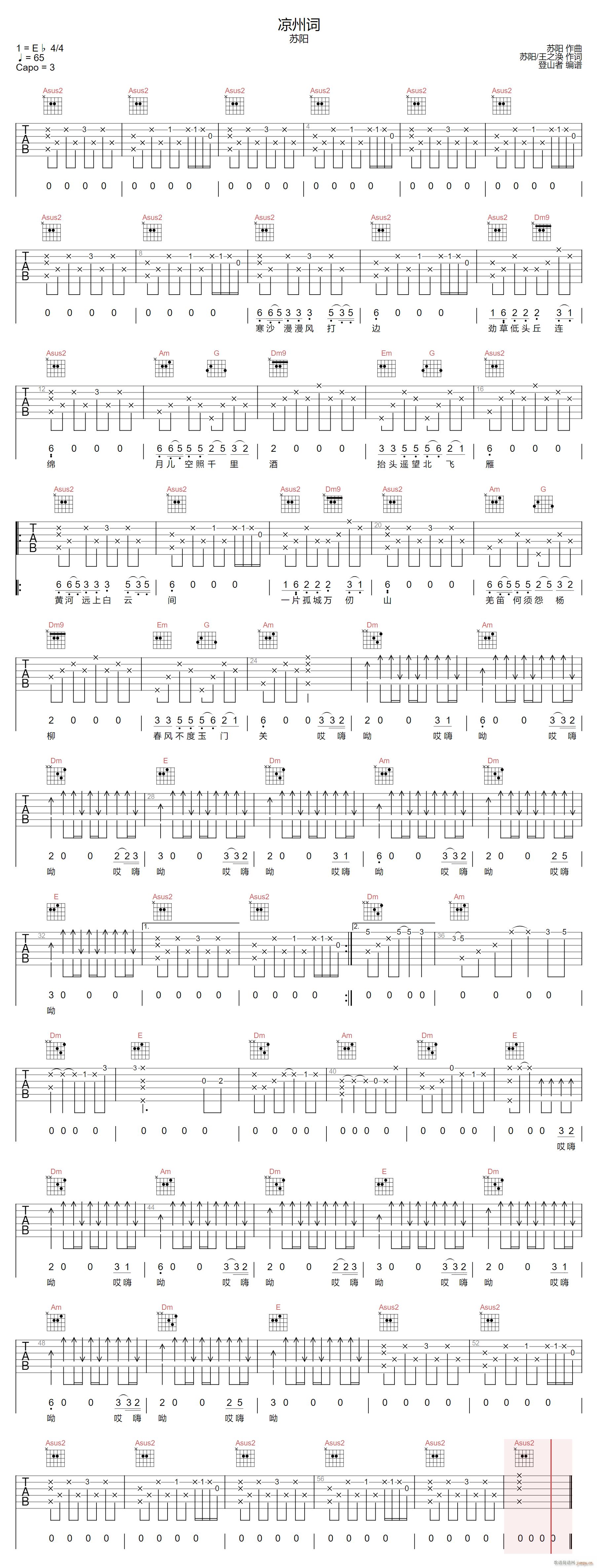 公众号:绵羊乐谱 凉州词 ( C调指法原版编配) 免费弹唱吉他谱_六线谱/词曲:苏阳 点击: (登山者) 公众号:绵羊乐谱 | 官方QQ群:978773290 不吃独食,学会分享!本文链接:http://www.shaomingyang.com/btb/33292.html 转载请标明出处,尊重原创(๑╹◡╹)ノ。如信息有误或版权疑问,请通过网站底部联系我们会第一时间处理,感谢理解支持(◕ᴗ◕✿)!