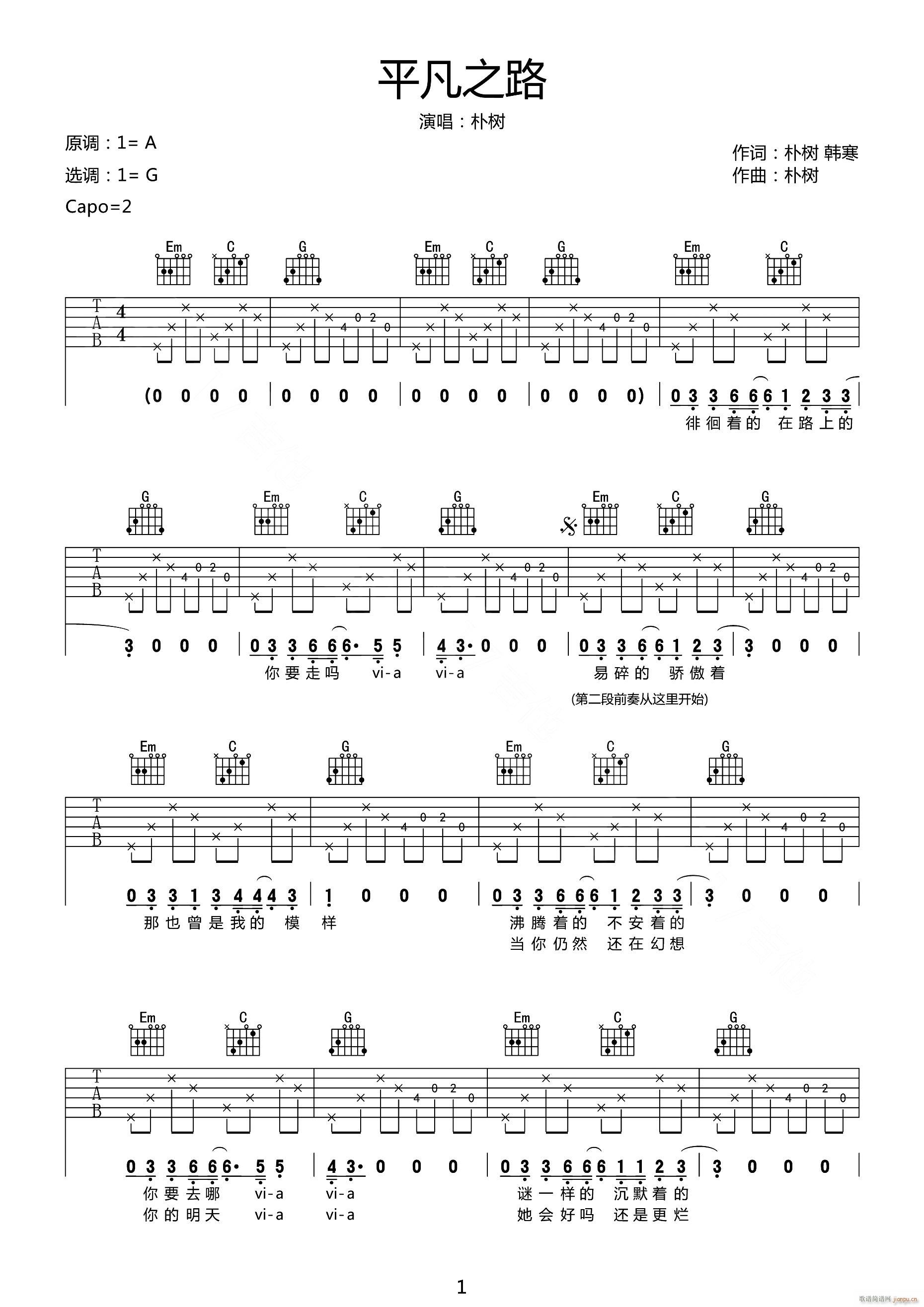 公众号:绵羊乐谱 平凡之路 ( G调指法原版编配) 免费弹唱吉他谱_六线谱/词曲:朴树 点击: (网络) 公众号:绵羊乐谱 | 官方QQ群:978773290 不吃独食,学会分享!本文链接:http://www.shaomingyang.com/btb/33345.html 转载请标明出处,尊重原创(๑╹◡╹)ノ。如信息有误或版权疑问,请通过网站底部联系我们会第一时间处理,感谢理解支持(◕ᴗ◕✿)!