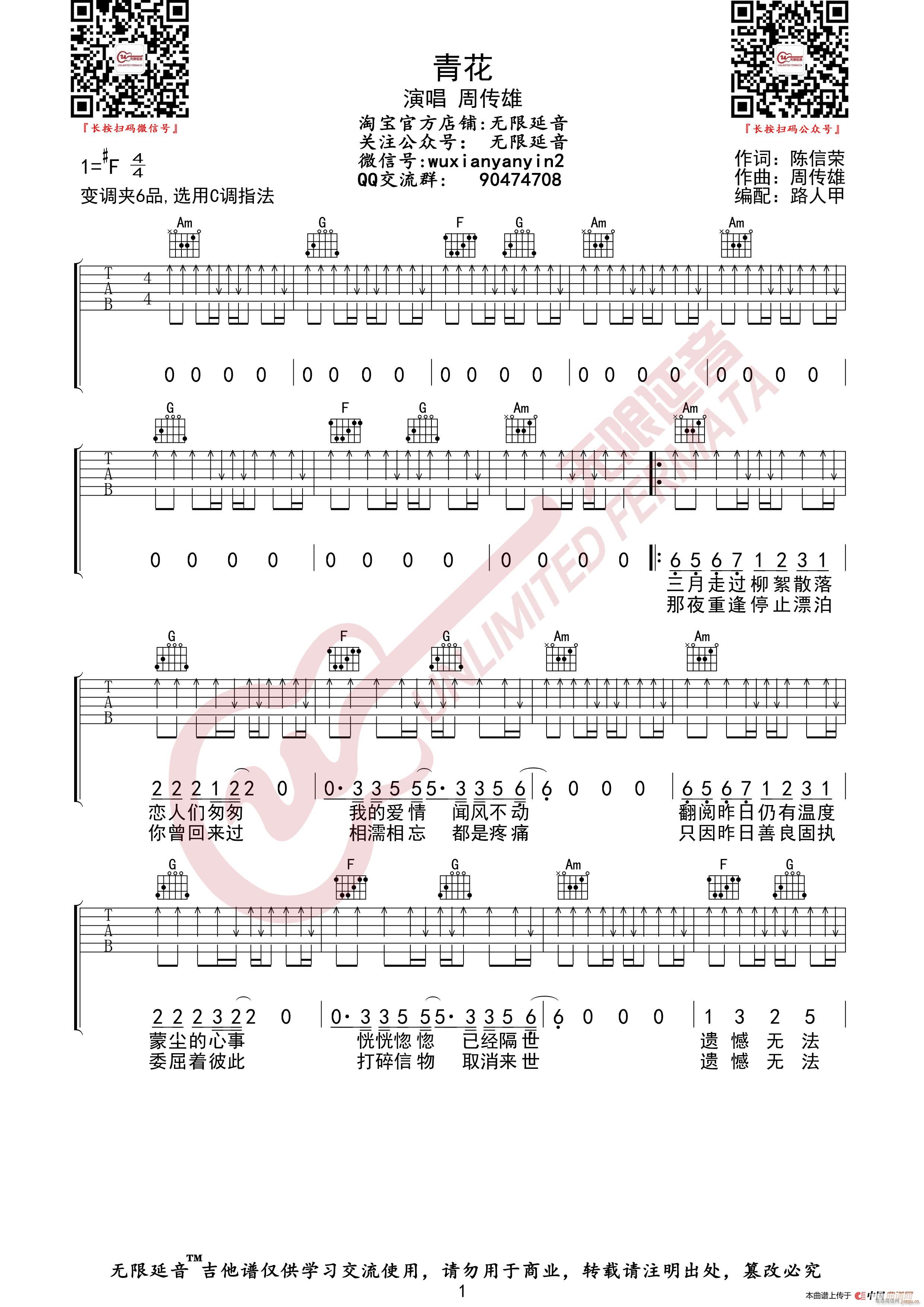 公众号:绵羊乐谱 周传雄 青花 (无限延音编配) 免费弹唱吉他谱_六线谱/词曲: 点击: (网络) 公众号:绵羊乐谱 | 官方QQ群:978773290 不吃独食,学会分享!本文链接:http://www.shaomingyang.com/btb/33404.html 转载请标明出处,尊重原创(๑╹◡╹)ノ。如信息有误或版权疑问,请通过网站底部联系我们会第一时间处理,感谢理解支持(◕ᴗ◕✿)!