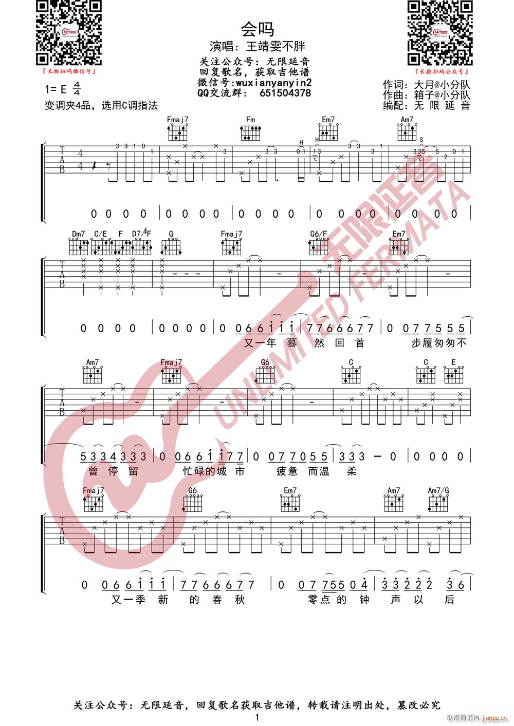 公众号:绵羊乐谱 王靖雯不胖 会吗 (无限延音编配) 免费弹唱吉他谱_六线谱/词曲: 点击: (网络) 公众号:绵羊乐谱 | 官方QQ群:978773290 不吃独食,学会分享!本文链接:http://www.shaomingyang.com/btb/33671.html 转载请标明出处,尊重原创(๑╹◡╹)ノ。如信息有误或版权疑问,请通过网站底部联系我们会第一时间处理,感谢理解支持(◕ᴗ◕✿)!