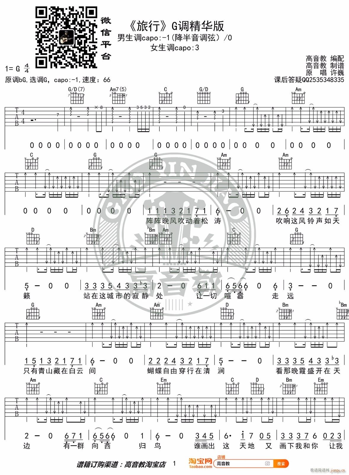 公众号:绵羊乐谱 旅行 ( G调指法原版编配) 免费弹唱吉他谱_六线谱/词曲:许巍 点击: (高音教) 公众号:绵羊乐谱 | 官方QQ群:978773290 不吃独食,学会分享!本文链接:http://www.shaomingyang.com/btb/33678.html 转载请标明出处,尊重原创(๑╹◡╹)ノ。如信息有误或版权疑问,请通过网站底部联系我们会第一时间处理,感谢理解支持(◕ᴗ◕✿)!