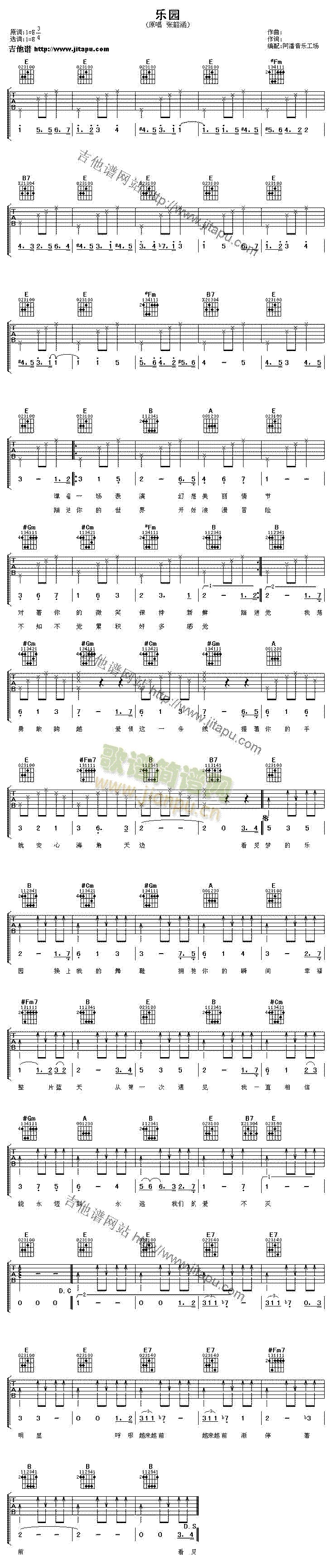 公众号:绵羊乐谱 乐园免费弹唱吉他谱_六线谱:张韶涵 点击: 1000 图片可能经过缩放,手机长按或点开后长按保存,电脑鼠标右键保存. (网络) 公众号:绵羊乐谱 | 官方QQ群:978773290 不吃独食,学会分享!本文链接:http://www.shaomingyang.com/btb/33680.html 转载请标明出处,尊重原创(๑╹◡╹)ノ。如信息有误或版权疑问,请通过网站底部联系我们会第一时间处理,感谢理解支持(◕ᴗ◕✿)!