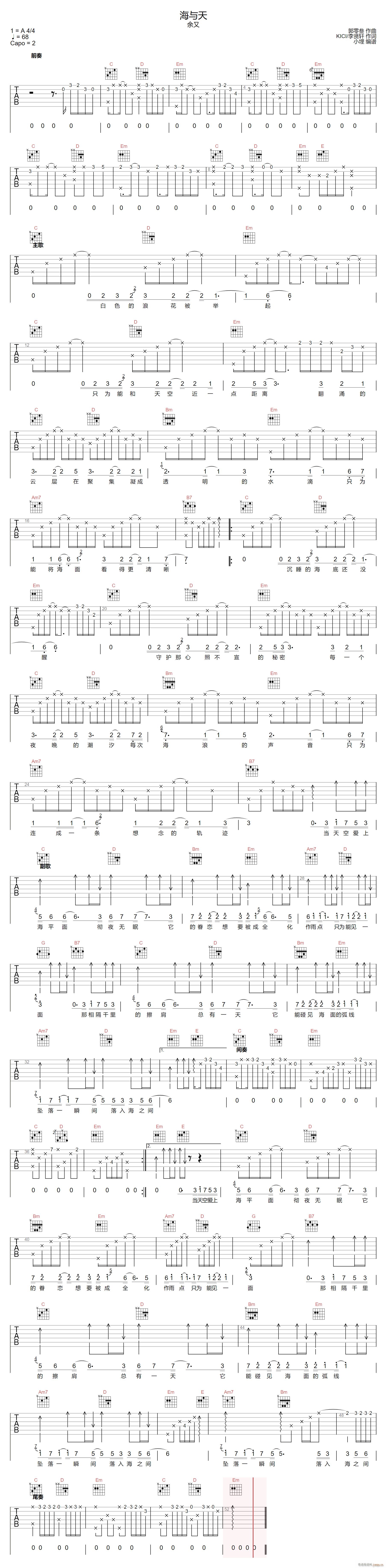 公众号:绵羊乐谱 海与天 ( G调指法原版编配) 免费弹唱吉他谱_六线谱/词曲:余又 点击: (小埋) 公众号:绵羊乐谱 | 官方QQ群:978773290 不吃独食,学会分享!本文链接:http://www.shaomingyang.com/btb/33745.html 转载请标明出处,尊重原创(๑╹◡╹)ノ。如信息有误或版权疑问,请通过网站底部联系我们会第一时间处理,感谢理解支持(◕ᴗ◕✿)!