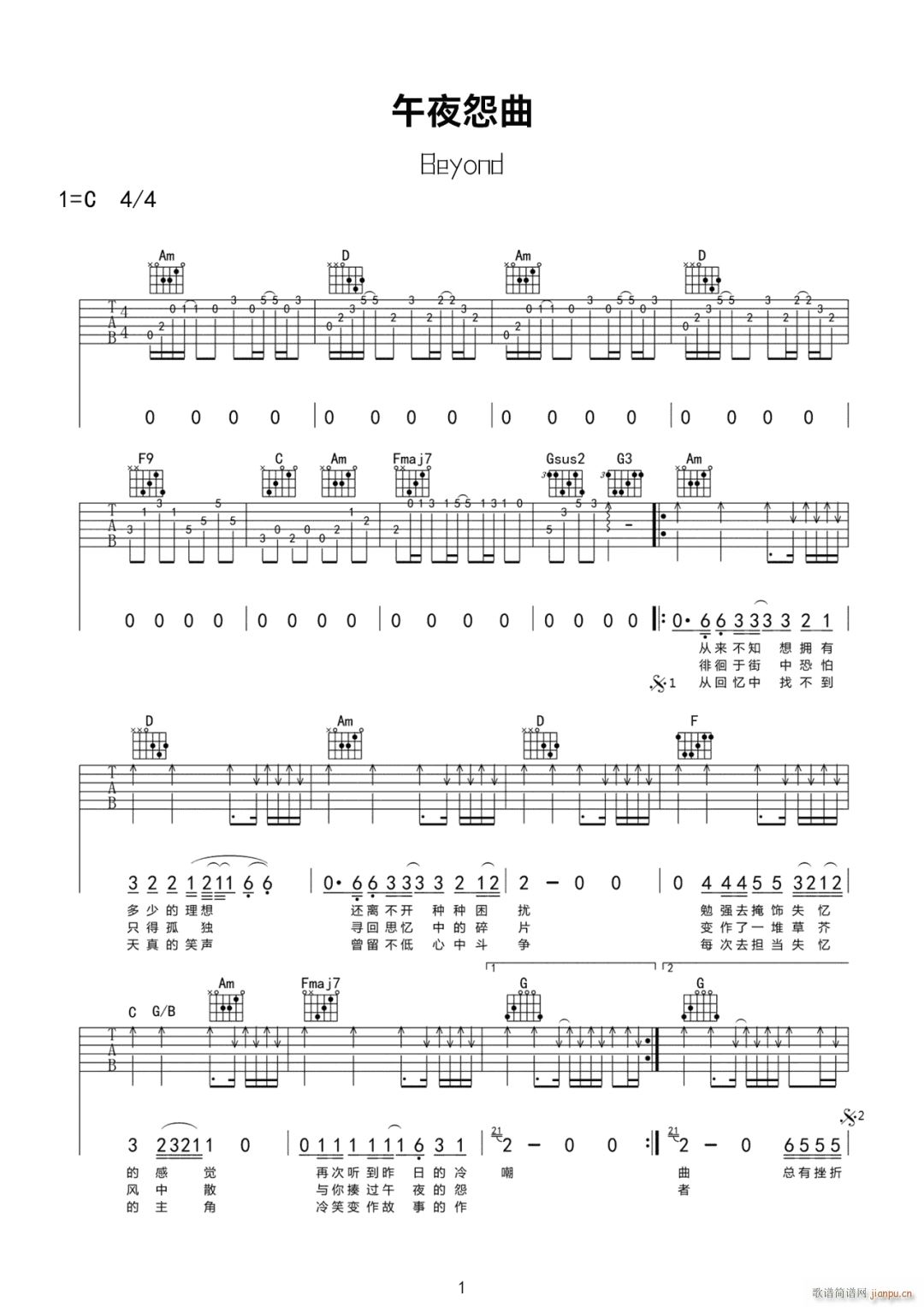 公众号:绵羊乐谱 午夜怨曲 ( C调原版编配) 免费弹唱吉他谱_六线谱/词曲:Beyond 点击: (网络) 公众号:绵羊乐谱 | 官方QQ群:978773290 不吃独食,学会分享!本文链接:http://www.shaomingyang.com/btb/33746.html 转载请标明出处,尊重原创(๑╹◡╹)ノ。如信息有误或版权疑问,请通过网站底部联系我们会第一时间处理,感谢理解支持(◕ᴗ◕✿)!
