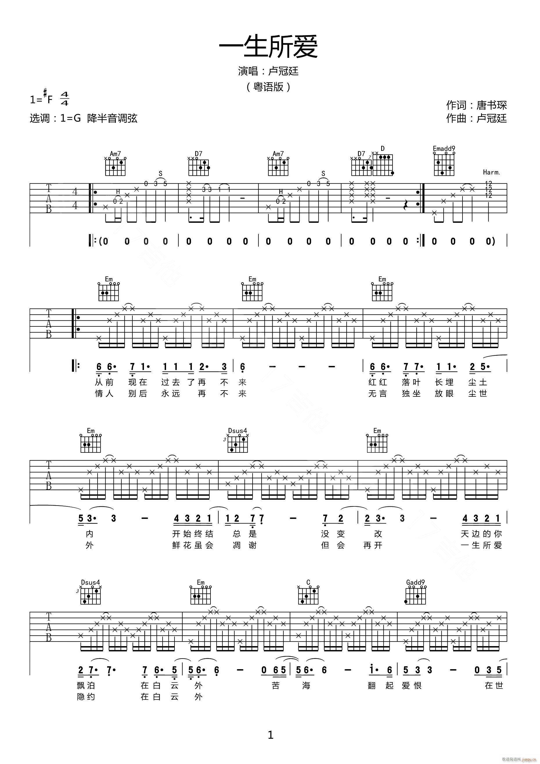公众号:绵羊乐谱 一生所爱 ( G调指法原版编配) 免费弹唱吉他谱_六线谱/词曲:卢冠廷 点击: (网络) 公众号:绵羊乐谱 | 官方QQ群:978773290 不吃独食,学会分享!本文链接:http://www.shaomingyang.com/btb/33758.html 转载请标明出处,尊重原创(๑╹◡╹)ノ。如信息有误或版权疑问,请通过网站底部联系我们会第一时间处理,感谢理解支持(◕ᴗ◕✿)!