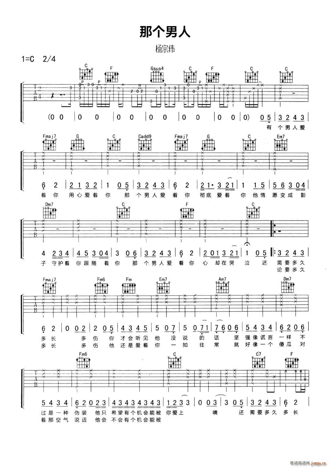 公众号:绵羊乐谱 那个男人 -C调 免费弹唱吉他谱_六线谱/词曲:杨宗纬 点击: (吉他谱) 公众号:绵羊乐谱 | 官方QQ群:978773290 不吃独食,学会分享!本文链接:http://www.shaomingyang.com/btb/33770.html 转载请标明出处,尊重原创(๑╹◡╹)ノ。如信息有误或版权疑问,请通过网站底部联系我们会第一时间处理,感谢理解支持(◕ᴗ◕✿)!