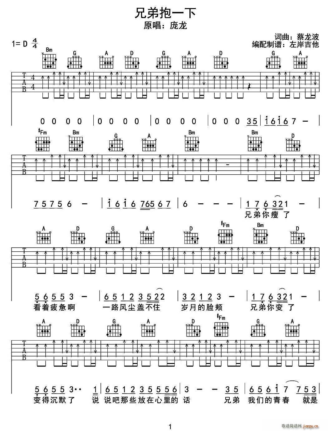 公众号:绵羊乐谱 兄弟抱一下(左岸吉他编配版)免费弹唱吉他谱_六线谱/词曲:庞龙 点击: 1000 图片可能经过缩放,手机长按或点开后长按保存,电脑鼠标右键保存. (车里子) 公众号:绵羊乐谱 | 官方QQ群:978773290 不吃独食,学会分享!本文链接:http://www.shaomingyang.com/btb/33784.html 转载请标明出处,尊重原创(๑╹◡╹)ノ。如信息有误或版权疑问,请通过网站底部联系我们会第一时间处理,感谢理解支持(◕ᴗ◕✿)!
