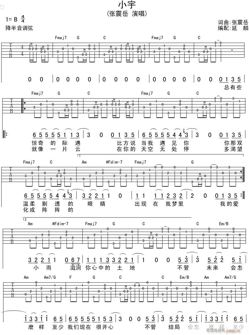 公众号:绵羊乐谱 小宇 吉他弹唱免费弹唱吉他谱_六线谱/词曲:张震岳 点击: 1000 图片可能经过缩放,手机长按或点开后长按保存,电脑鼠标右键保存. (网络) 公众号:绵羊乐谱 | 官方QQ群:978773290 不吃独食,学会分享!本文链接:http://www.shaomingyang.com/btb/33871.html 转载请标明出处,尊重原创(๑╹◡╹)ノ。如信息有误或版权疑问,请通过网站底部联系我们会第一时间处理,感谢理解支持(◕ᴗ◕✿)!