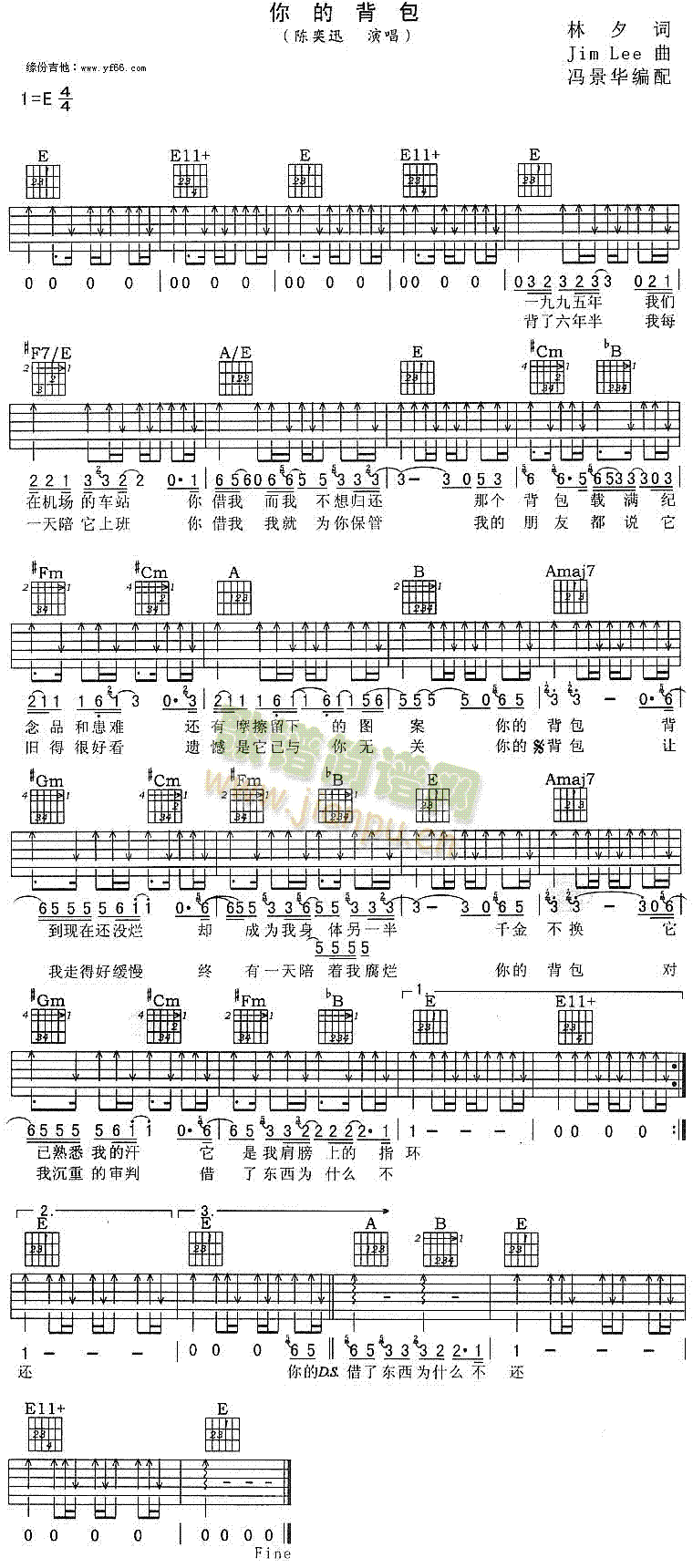 公众号:绵羊乐谱 你的背包免费弹唱吉他谱_六线谱:陈奕迅 点击: 1000 图片可能经过缩放,手机长按或点开后长按保存,电脑鼠标右键保存. (网络) 公众号:绵羊乐谱 | 官方QQ群:978773290 不吃独食,学会分享!本文链接:http://www.shaomingyang.com/btb/33872.html 转载请标明出处,尊重原创(๑╹◡╹)ノ。如信息有误或版权疑问,请通过网站底部联系我们会第一时间处理,感谢理解支持(◕ᴗ◕✿)!