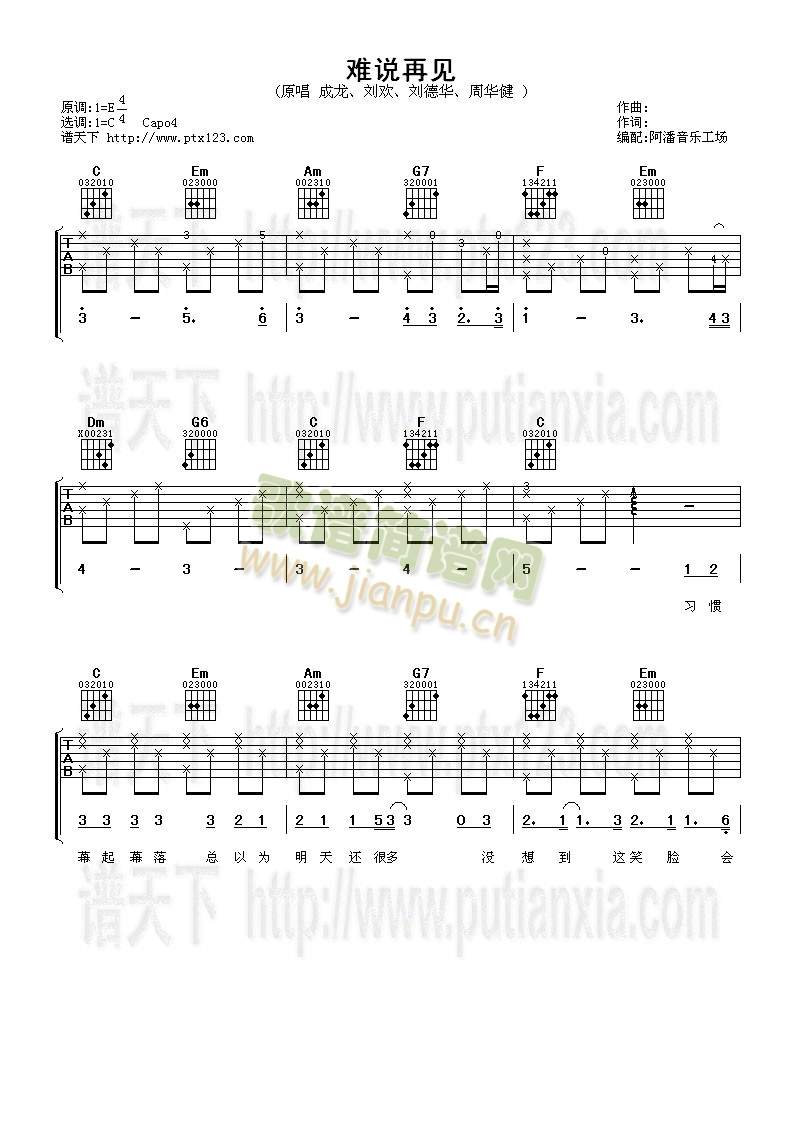 公众号:绵羊乐谱 难说再见免费弹唱吉他谱_六线谱:群星 点击: 1000 图片可能经过缩放,手机长按或点开后长按保存,电脑鼠标右键保存. (网络) 公众号:绵羊乐谱 | 官方QQ群:978773290 不吃独食,学会分享!本文链接:http://www.shaomingyang.com/btb/33881.html 转载请标明出处,尊重原创(๑╹◡╹)ノ。如信息有误或版权疑问,请通过网站底部联系我们会第一时间处理,感谢理解支持(◕ᴗ◕✿)!
