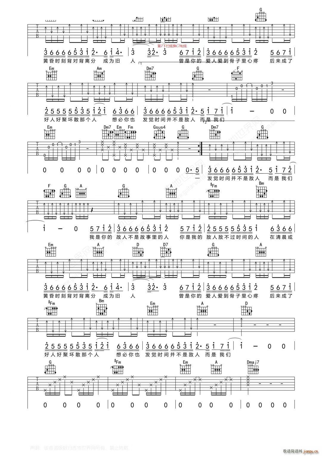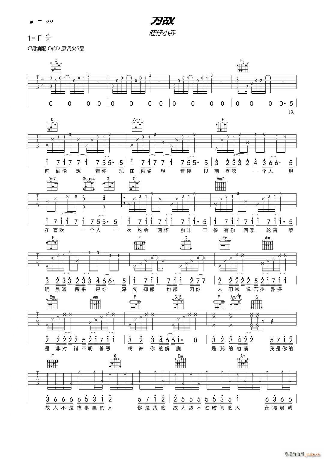 公众号:绵羊乐谱 为敌 -C调转D调 免费弹唱吉他谱_六线谱/词曲:旺仔小乔 点击: (吉他谱) 公众号:绵羊乐谱 | 官方QQ群:978773290 不吃独食,学会分享!本文链接:http://www.shaomingyang.com/btb/33884.html 转载请标明出处,尊重原创(๑╹◡╹)ノ。如信息有误或版权疑问,请通过网站底部联系我们会第一时间处理,感谢理解支持(◕ᴗ◕✿)!