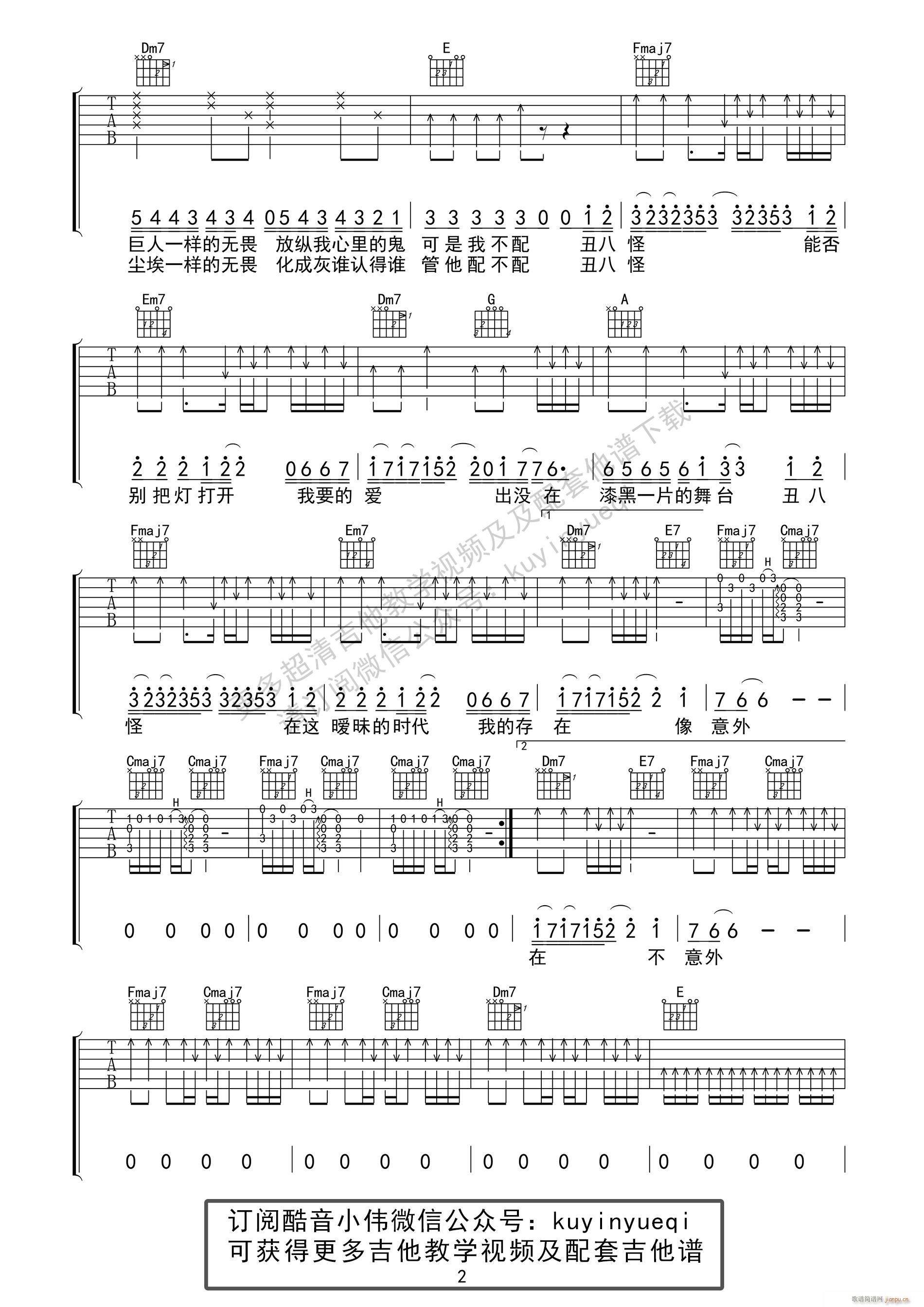 公众号:绵羊乐谱 丑八怪 C调 及教学( 吉他教学)免费弹唱吉他谱_六线谱/词曲:薛之谦 点击: 1000 图片可能经过缩放,手机长按或点开后长按保存,电脑鼠标右键保存. (酷音小伟) 公众号:绵羊乐谱 | 官方QQ群:978773290 不吃独食,学会分享!本文链接:http://www.shaomingyang.com/btb/33896.html 转载请标明出处,尊重原创(๑╹◡╹)ノ。如信息有误或版权疑问,请通过网站底部联系我们会第一时间处理,感谢理解支持(◕ᴗ◕✿)!