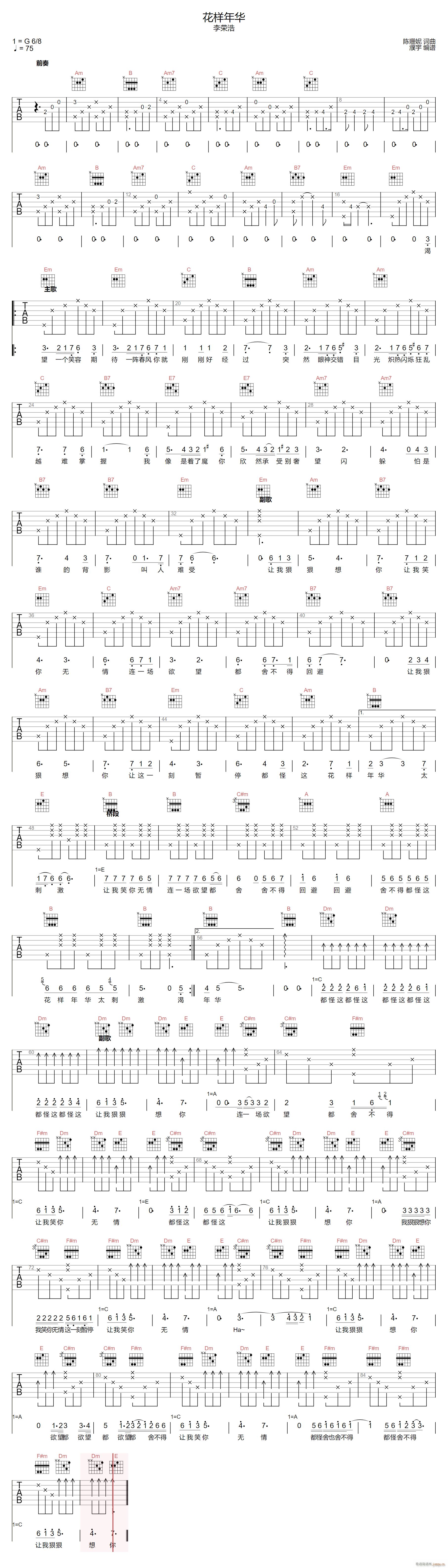 公众号:绵羊乐谱 花样年华 ( G调原版编配) 免费弹唱吉他谱_六线谱/词曲:李荣浩 点击: (濮宇) 公众号:绵羊乐谱 | 官方QQ群:978773290 不吃独食,学会分享!本文链接:http://www.shaomingyang.com/btb/33900.html 转载请标明出处,尊重原创(๑╹◡╹)ノ。如信息有误或版权疑问,请通过网站底部联系我们会第一时间处理,感谢理解支持(◕ᴗ◕✿)!