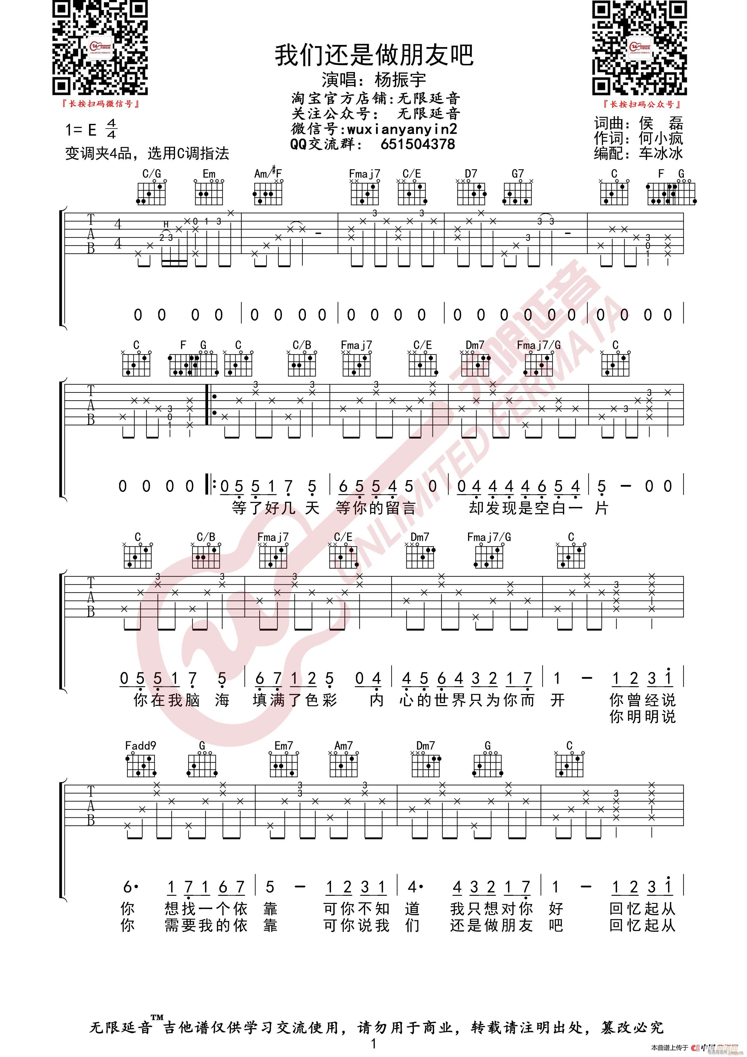 公众号:绵羊乐谱 杨振宇 我们还是做朋友吧 (无限延音编配) 免费弹唱吉他谱_六线谱/词曲: 点击: (网络) 公众号:绵羊乐谱 | 官方QQ群:978773290 不吃独食,学会分享!本文链接:http://www.shaomingyang.com/btb/33902.html 转载请标明出处,尊重原创(๑╹◡╹)ノ。如信息有误或版权疑问,请通过网站底部联系我们会第一时间处理,感谢理解支持(◕ᴗ◕✿)!