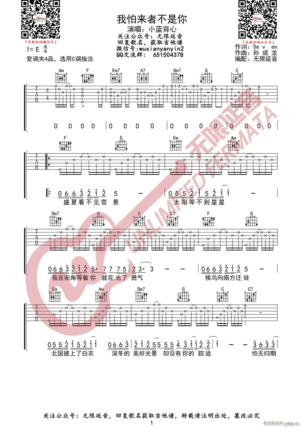 公众号:绵羊乐谱 小蓝背心 我怕来者不是你 (无限延音编配) 免费弹唱吉他谱_六线谱/词曲: 点击: (网络) 公众号:绵羊乐谱 | 官方QQ群:978773290 不吃独食,学会分享!本文链接:http://www.shaomingyang.com/btb/33964.html 转载请标明出处,尊重原创(๑╹◡╹)ノ。如信息有误或版权疑问,请通过网站底部联系我们会第一时间处理,感谢理解支持(◕ᴗ◕✿)!