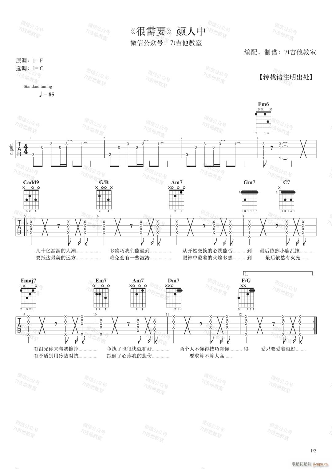 公众号:绵羊乐谱 很需要 ( C调指法原版编配) 免费弹唱吉他谱_六线谱/词曲:颜人中 点击: (网络) 公众号:绵羊乐谱 | 官方QQ群:978773290 不吃独食,学会分享!本文链接:http://www.shaomingyang.com/btb/33965.html 转载请标明出处,尊重原创(๑╹◡╹)ノ。如信息有误或版权疑问,请通过网站底部联系我们会第一时间处理,感谢理解支持(◕ᴗ◕✿)!