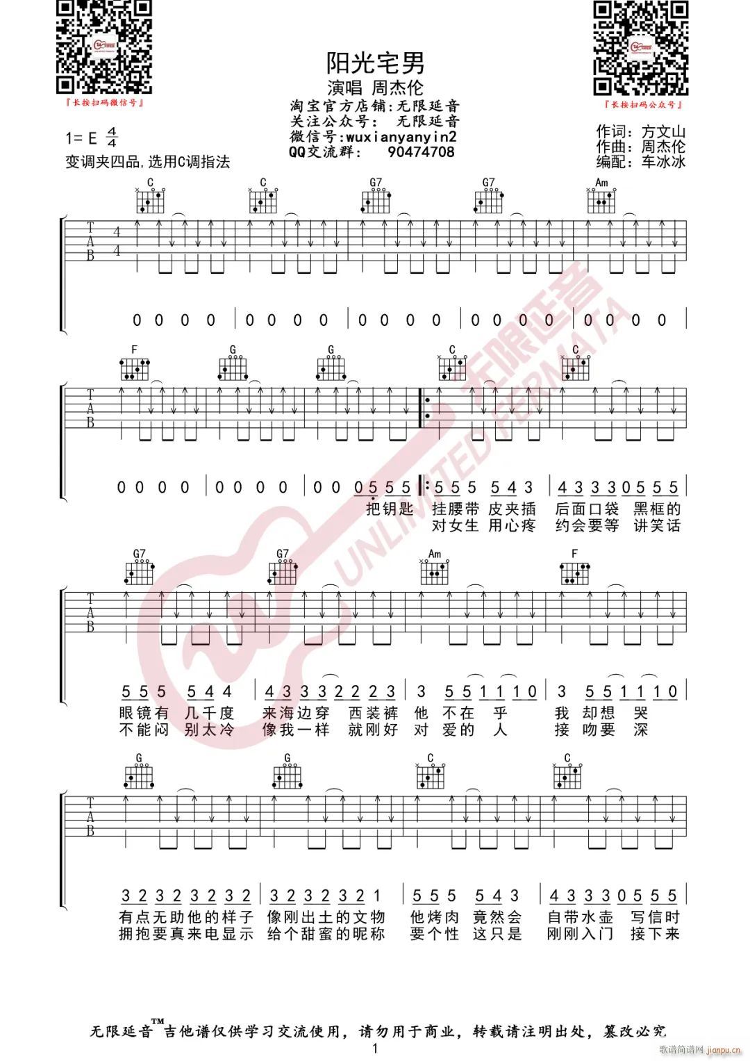 公众号:绵羊乐谱 阳光宅男 ( C调指法扫弦版编配) 免费弹唱吉他谱_六线谱/词曲:周杰伦 点击: (无限延音) 公众号:绵羊乐谱 | 官方QQ群:978773290 不吃独食,学会分享!本文链接:http://www.shaomingyang.com/btb/33968.html 转载请标明出处,尊重原创(๑╹◡╹)ノ。如信息有误或版权疑问,请通过网站底部联系我们会第一时间处理,感谢理解支持(◕ᴗ◕✿)!