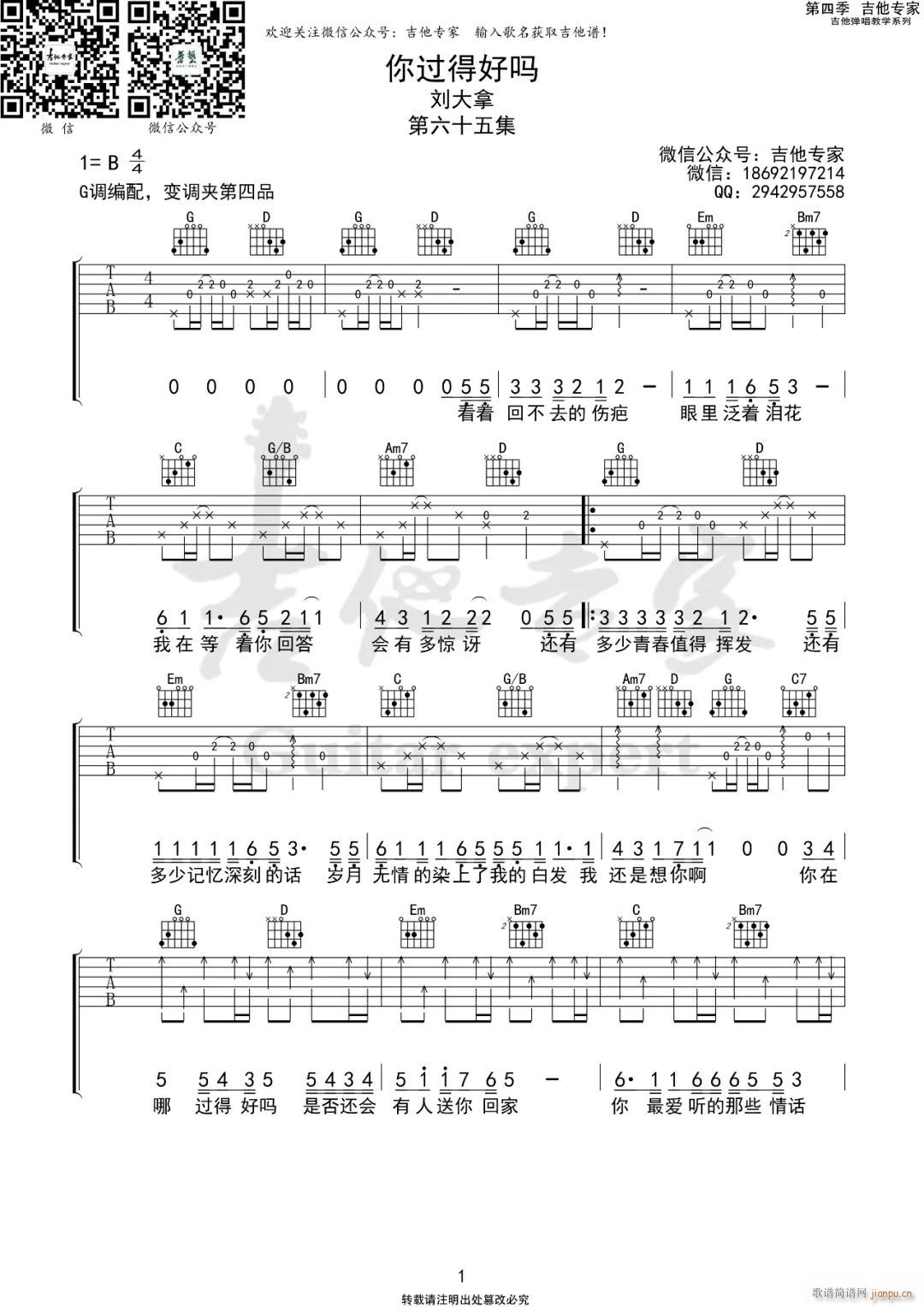 公众号:绵羊乐谱 你过得好吗 ( G调原版编配)免费弹唱吉他谱_六线谱/词曲:刘大拿 点击: 1000 图片可能经过缩放,手机长按或点开后长按保存,电脑鼠标右键保存. (吉他专家) 公众号:绵羊乐谱 | 官方QQ群:978773290 不吃独食,学会分享!本文链接:http://www.shaomingyang.com/btb/33989.html 转载请标明出处,尊重原创(๑╹◡╹)ノ。如信息有误或版权疑问,请通过网站底部联系我们会第一时间处理,感谢理解支持(◕ᴗ◕✿)!