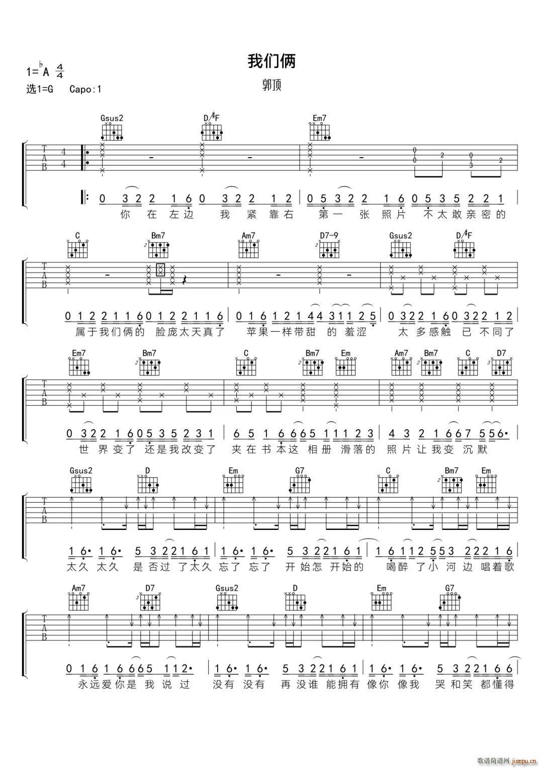 公众号:绵羊乐谱 我们俩 -G调 免费弹唱吉他谱_六线谱/词曲:郭顶 点击: (吉他谱) 公众号:绵羊乐谱 | 官方QQ群:978773290 不吃独食,学会分享!本文链接:http://www.shaomingyang.com/btb/34001.html 转载请标明出处,尊重原创(๑╹◡╹)ノ。如信息有误或版权疑问,请通过网站底部联系我们会第一时间处理,感谢理解支持(◕ᴗ◕✿)!