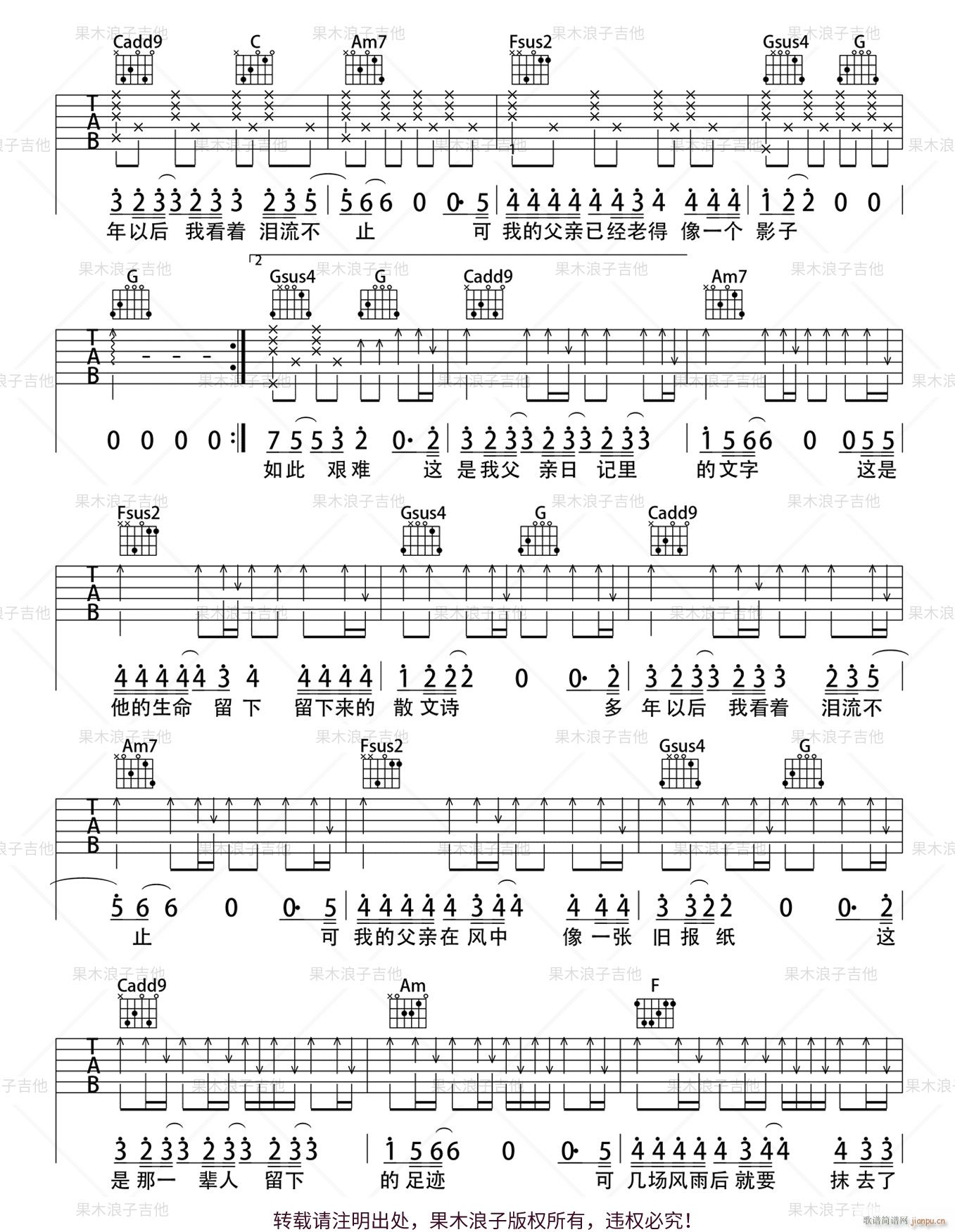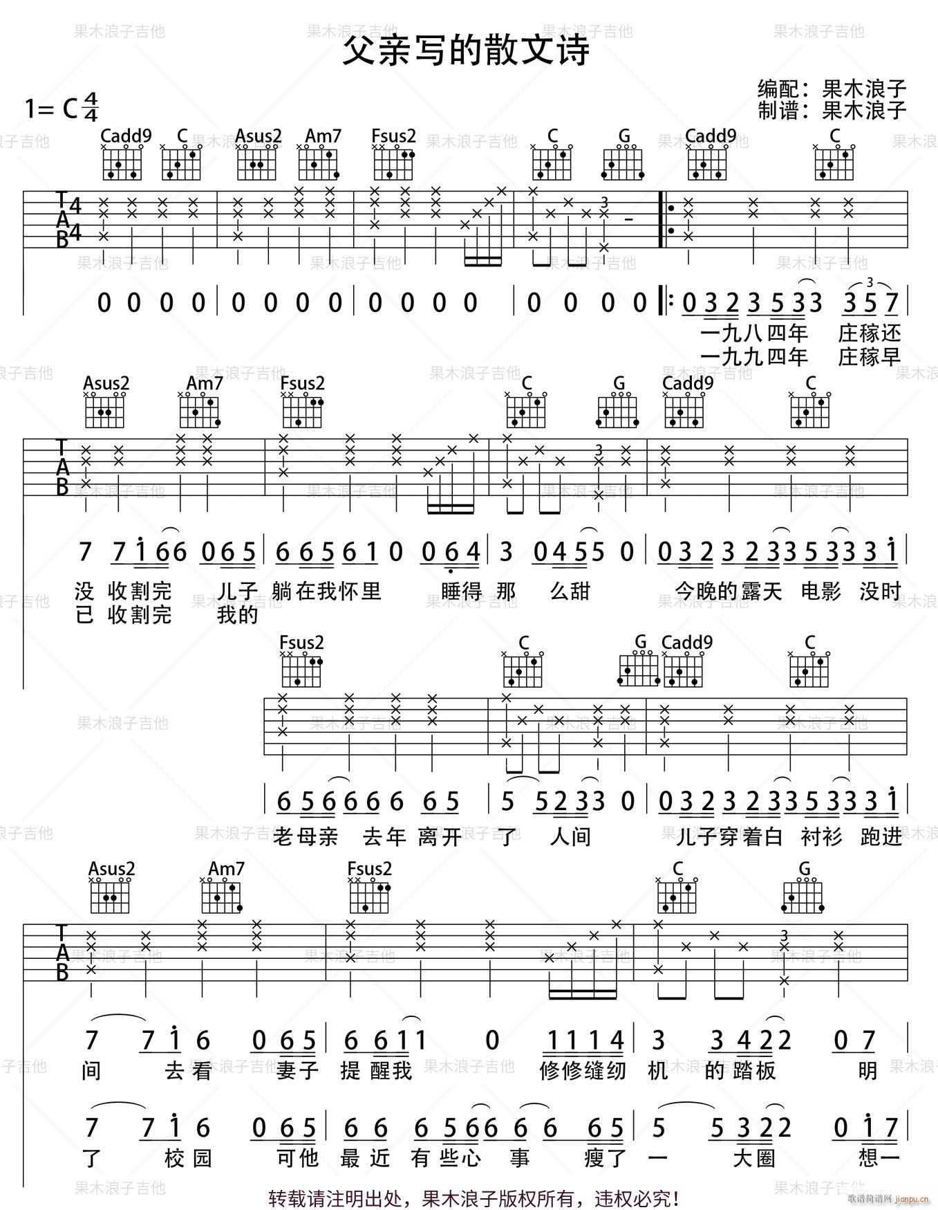 公众号:绵羊乐谱 父亲写的散文诗 ( C调原版) 免费弹唱吉他谱_六线谱/词曲:李健 点击: (果木浪子) 公众号:绵羊乐谱 | 官方QQ群:978773290 不吃独食,学会分享!本文链接:http://www.shaomingyang.com/btb/34054.html 转载请标明出处,尊重原创(๑╹◡╹)ノ。如信息有误或版权疑问,请通过网站底部联系我们会第一时间处理,感谢理解支持(◕ᴗ◕✿)!