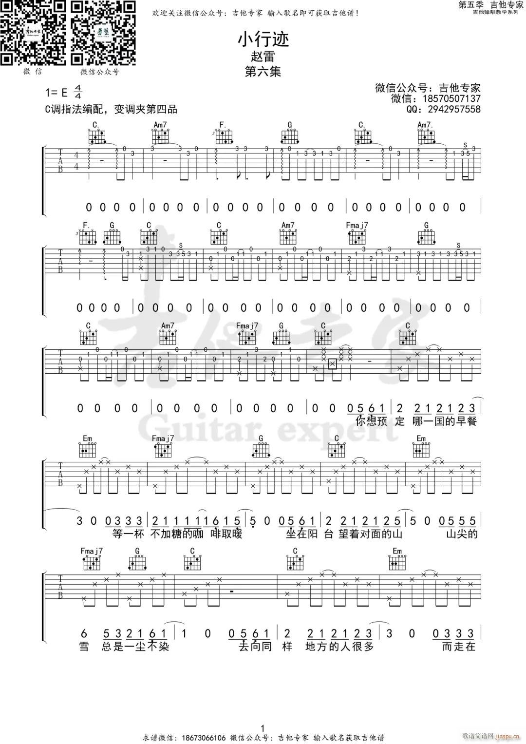 公众号:绵羊乐谱 小行迹 ( C调指法原版编配) 免费弹唱吉他谱_六线谱/词曲:赵雷 点击: (吉他专家) 公众号:绵羊乐谱 | 官方QQ群:978773290 不吃独食,学会分享!本文链接:http://www.shaomingyang.com/btb/34068.html 转载请标明出处,尊重原创(๑╹◡╹)ノ。如信息有误或版权疑问,请通过网站底部联系我们会第一时间处理,感谢理解支持(◕ᴗ◕✿)!