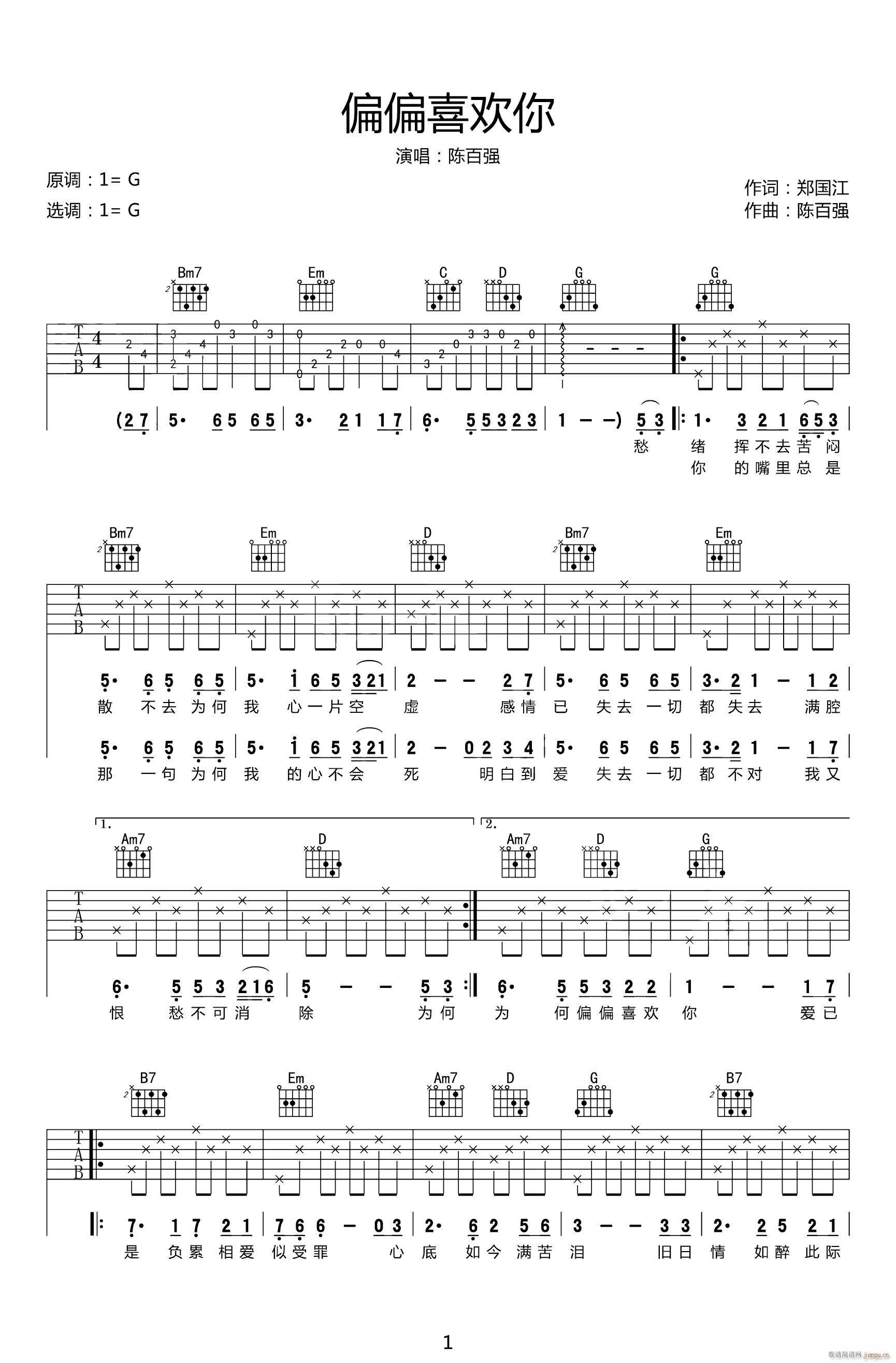 公众号:绵羊乐谱 偏偏喜欢你 ( G调原版编配)免费弹唱吉他谱_六线谱/词曲:陈百强 点击: 1000 图片可能经过缩放,手机长按或点开后长按保存,电脑鼠标右键保存. (网络) 公众号:绵羊乐谱 | 官方QQ群:978773290 不吃独食,学会分享!本文链接:http://www.shaomingyang.com/btb/34075.html 转载请标明出处,尊重原创(๑╹◡╹)ノ。如信息有误或版权疑问,请通过网站底部联系我们会第一时间处理,感谢理解支持(◕ᴗ◕✿)!