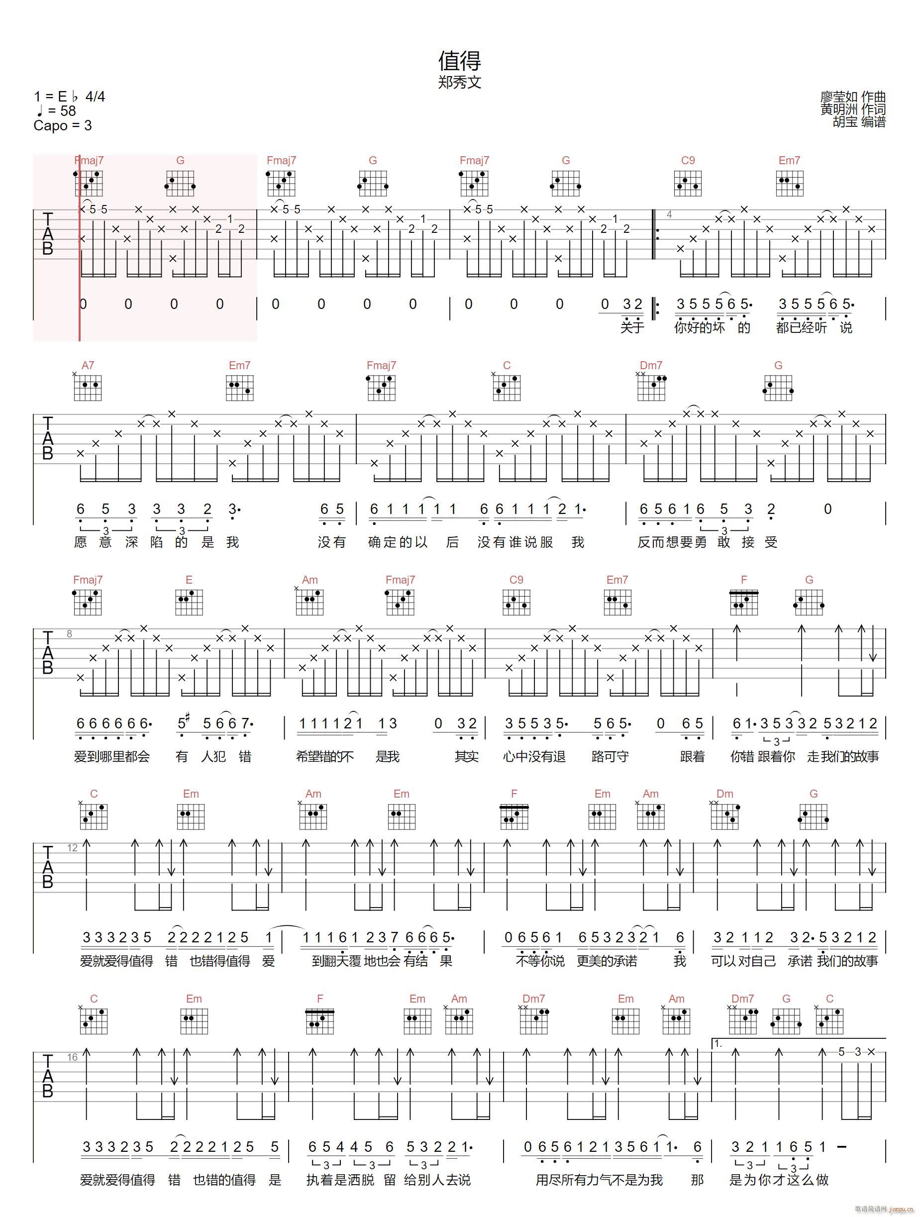 公众号:绵羊乐谱 值得 ( 郑秀文 C调指法) 免费弹唱吉他谱_六线谱/词曲:半吨兄弟 点击: (胡宝) 公众号:绵羊乐谱 | 官方QQ群:978773290 不吃独食,学会分享!本文链接:http://www.shaomingyang.com/btb/34085.html 转载请标明出处,尊重原创(๑╹◡╹)ノ。如信息有误或版权疑问,请通过网站底部联系我们会第一时间处理,感谢理解支持(◕ᴗ◕✿)!