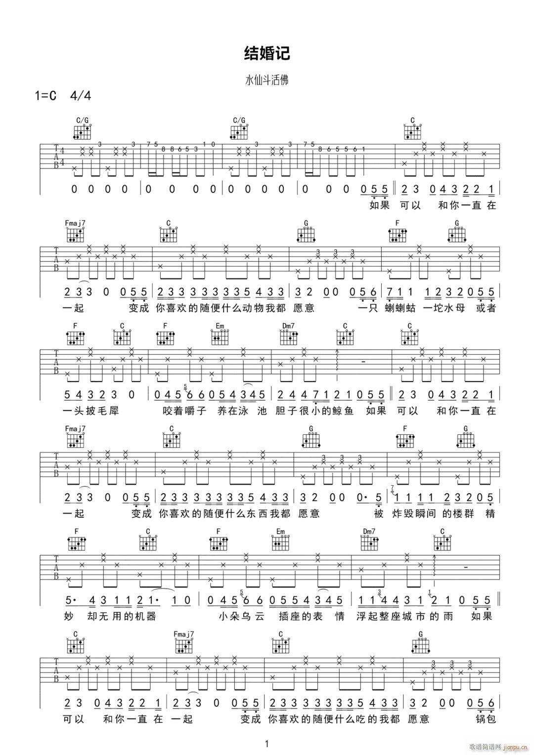 公众号:绵羊乐谱 结婚记 ( C调原版编配) 免费弹唱吉他谱_六线谱/词曲:水仙斗活佛 点击: (网络) 公众号:绵羊乐谱 | 官方QQ群:978773290 不吃独食,学会分享!本文链接:http://www.shaomingyang.com/btb/34094.html 转载请标明出处,尊重原创(๑╹◡╹)ノ。如信息有误或版权疑问,请通过网站底部联系我们会第一时间处理,感谢理解支持(◕ᴗ◕✿)!