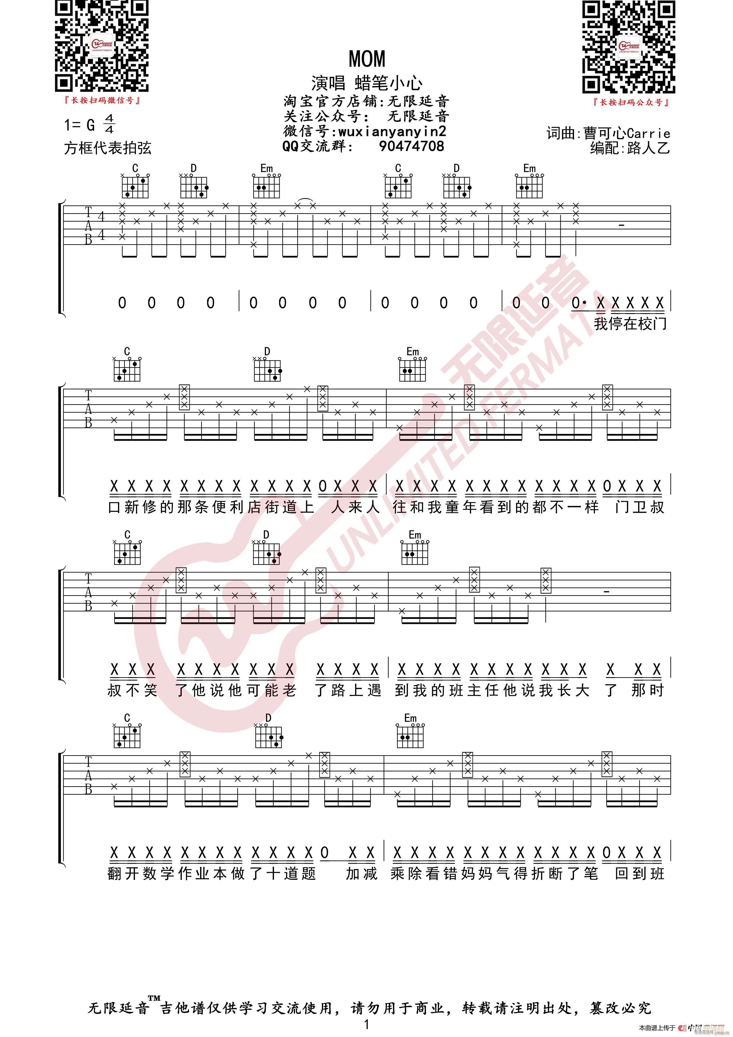 公众号:绵羊乐谱 蜡笔小心 MOM (无限延音编配) 免费弹唱吉他谱_六线谱/词曲: 点击: (网络) 公众号:绵羊乐谱 | 官方QQ群:978773290 不吃独食,学会分享!本文链接:http://www.shaomingyang.com/btb/34101.html 转载请标明出处,尊重原创(๑╹◡╹)ノ。如信息有误或版权疑问,请通过网站底部联系我们会第一时间处理,感谢理解支持(◕ᴗ◕✿)!