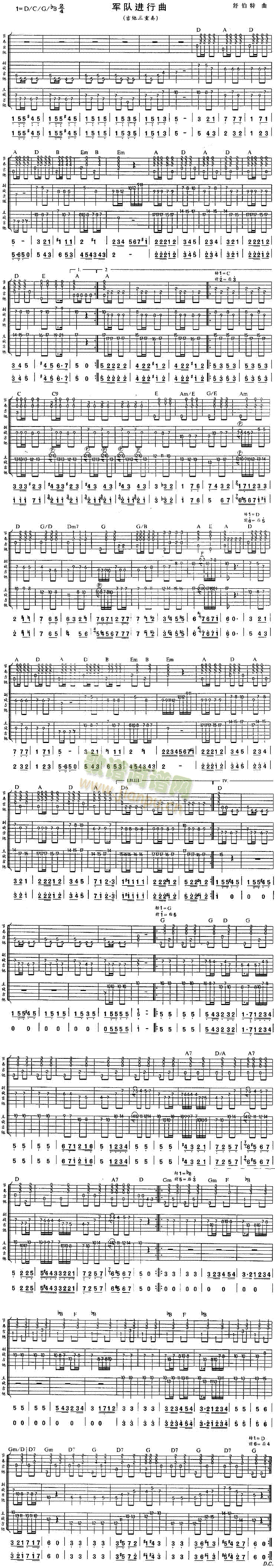 公众号:绵羊乐谱 军队进行曲(独奏曲)免费弹唱吉他谱_六线谱: 点击: 1000 图片可能经过缩放,手机长按或点开后长按保存,电脑鼠标右键保存. (网友郑波提供) 公众号:绵羊乐谱 | 官方QQ群:978773290 不吃独食,学会分享!本文链接:http://www.shaomingyang.com/btb/34102.html 转载请标明出处,尊重原创(๑╹◡╹)ノ。如信息有误或版权疑问,请通过网站底部联系我们会第一时间处理,感谢理解支持(◕ᴗ◕✿)!