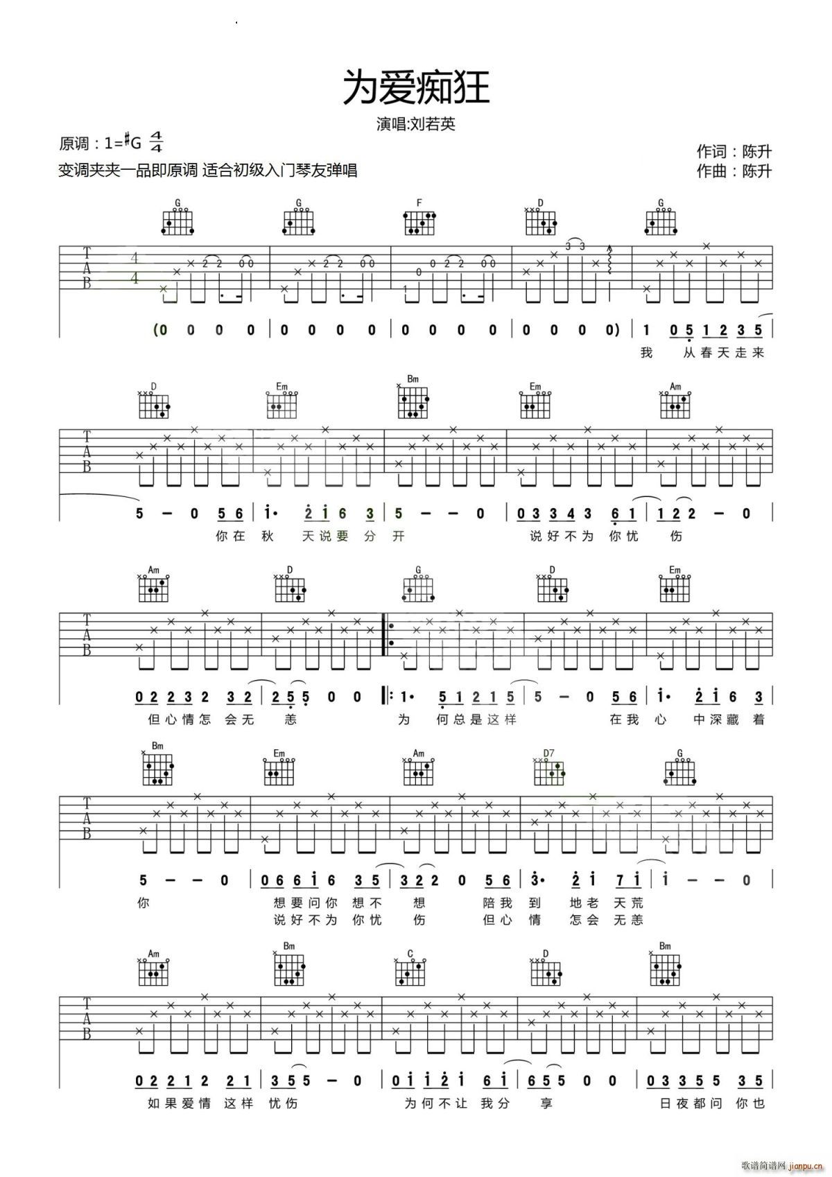 公众号:绵羊乐谱 为爱痴狂 -G调 免费弹唱吉他谱_六线谱/词曲:刘若英 陈升 陈升点击: (吉他谱) 公众号:绵羊乐谱 | 官方QQ群:978773290 不吃独食,学会分享!本文链接:http://www.shaomingyang.com/btb/34146.html 转载请标明出处,尊重原创(๑╹◡╹)ノ。如信息有误或版权疑问,请通过网站底部联系我们会第一时间处理,感谢理解支持(◕ᴗ◕✿)!