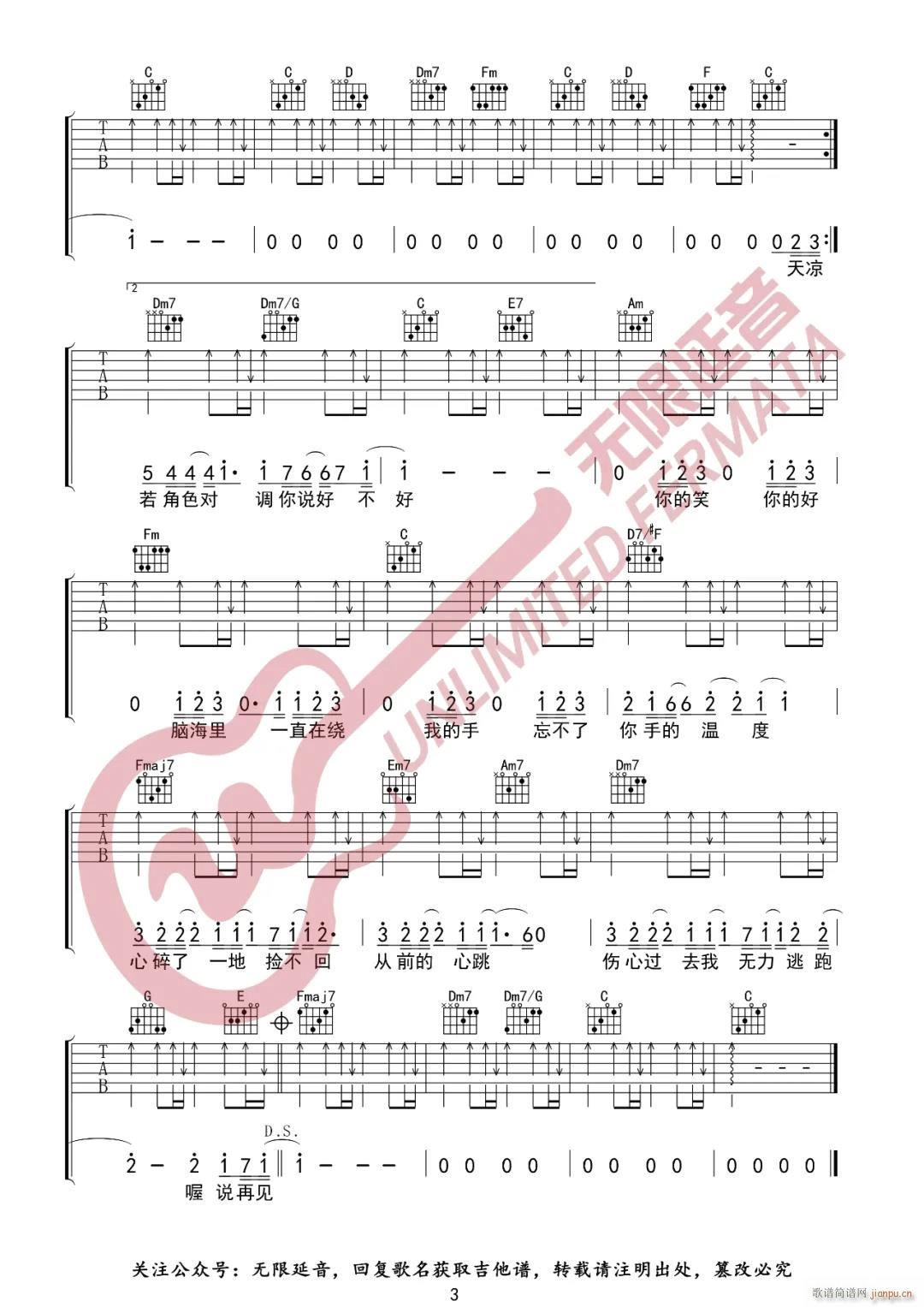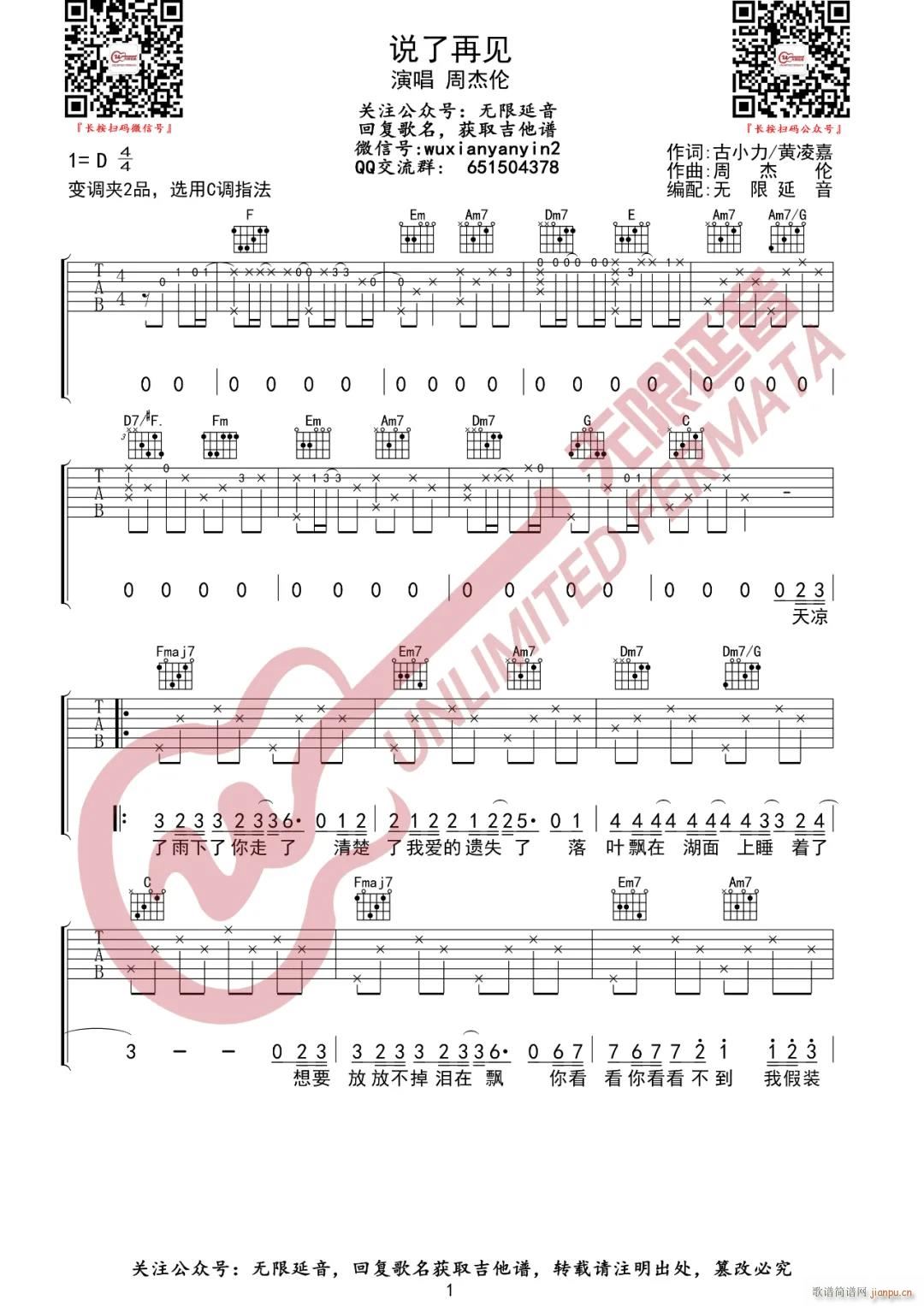公众号:绵羊乐谱 说了再见 ( C调指法原版编配) 免费弹唱吉他谱_六线谱/词曲:周杰伦 点击: (无限延音) 公众号:绵羊乐谱 | 官方QQ群:978773290 不吃独食,学会分享!本文链接:http://www.shaomingyang.com/btb/34220.html 转载请标明出处,尊重原创(๑╹◡╹)ノ。如信息有误或版权疑问,请通过网站底部联系我们会第一时间处理,感谢理解支持(◕ᴗ◕✿)!