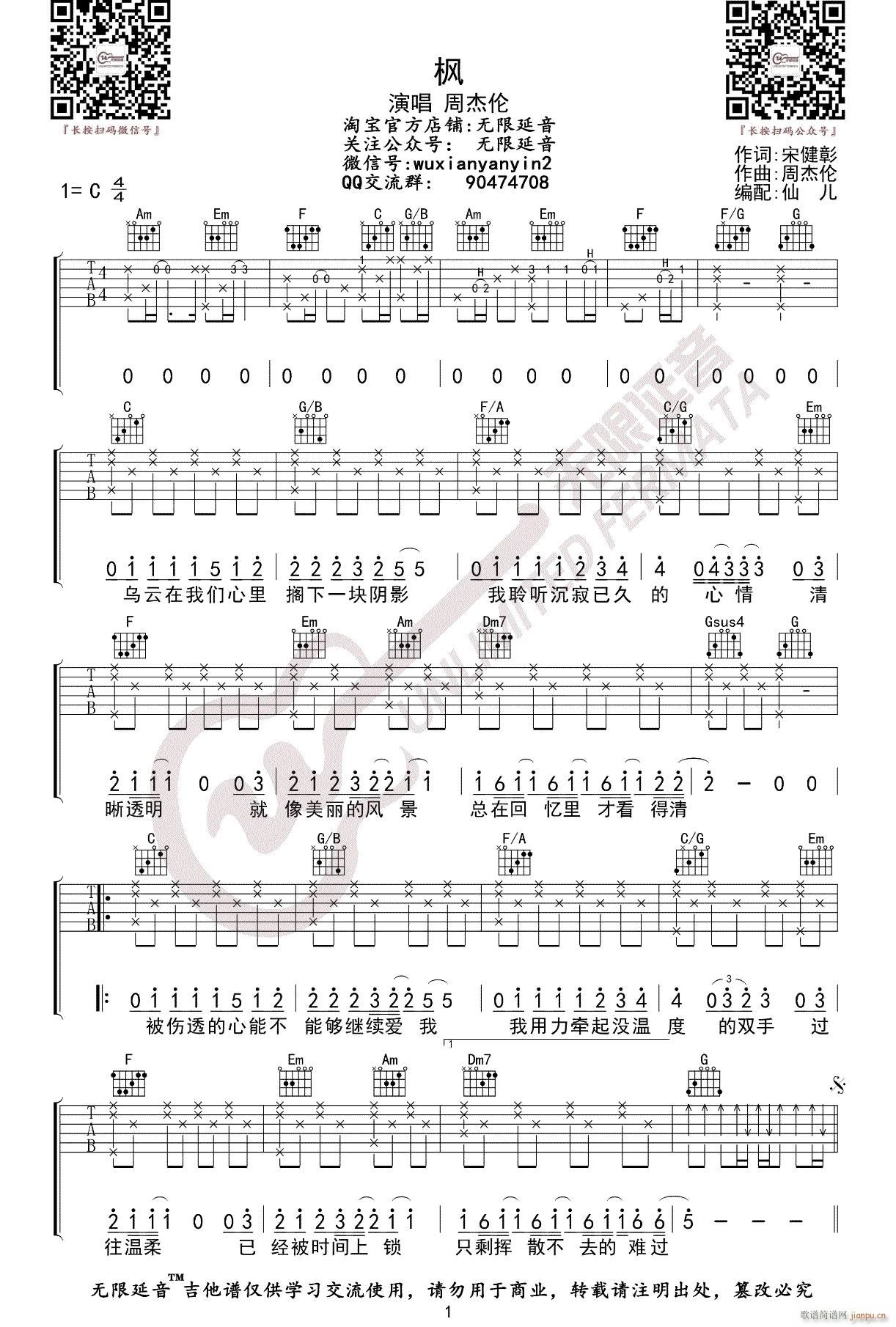 公众号:绵羊乐谱 枫 ( C调指法原版编配) 免费弹唱吉他谱_六线谱/词曲:周杰伦 点击: (无限延音) 公众号:绵羊乐谱 | 官方QQ群:978773290 不吃独食,学会分享!本文链接:http://www.shaomingyang.com/btb/34225.html 转载请标明出处,尊重原创(๑╹◡╹)ノ。如信息有误或版权疑问,请通过网站底部联系我们会第一时间处理,感谢理解支持(◕ᴗ◕✿)!