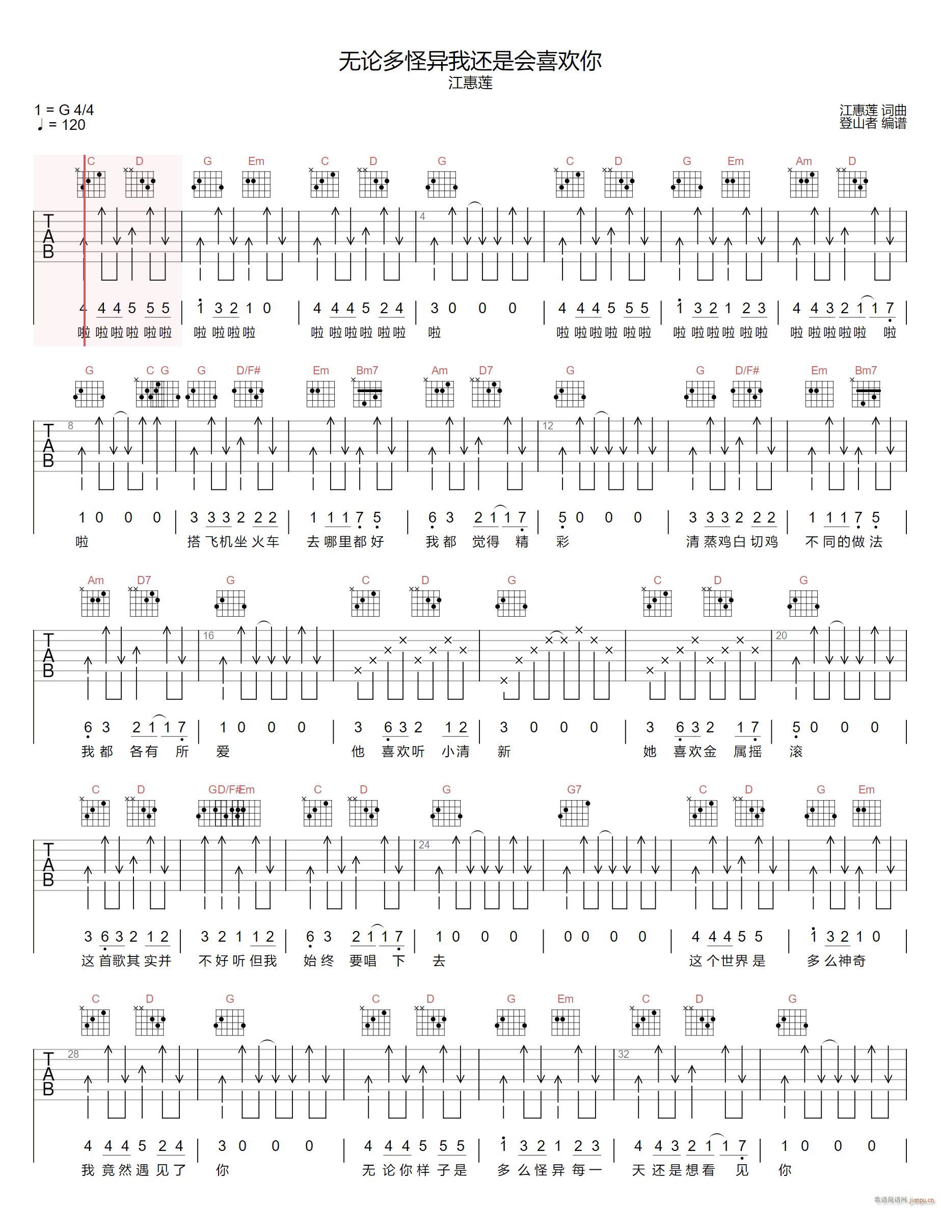 公众号:绵羊乐谱 无论多怪异我还是会喜欢你 免费弹唱吉他谱_六线谱/词曲:江惠莲 点击: (登山者) 公众号:绵羊乐谱 | 官方QQ群:978773290 不吃独食,学会分享!本文链接:http://www.shaomingyang.com/btb/34277.html 转载请标明出处,尊重原创(๑╹◡╹)ノ。如信息有误或版权疑问,请通过网站底部联系我们会第一时间处理,感谢理解支持(◕ᴗ◕✿)!