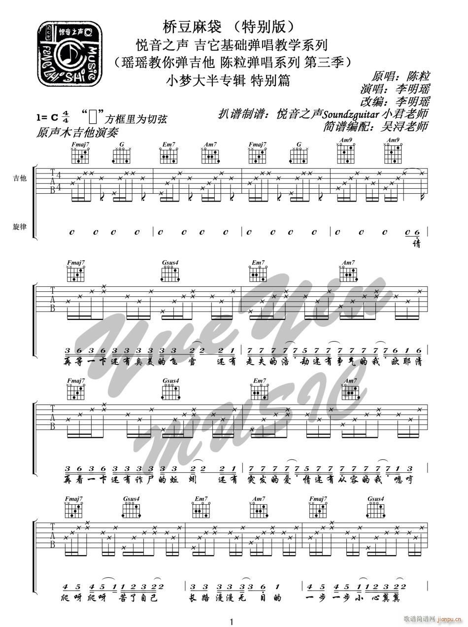 公众号:绵羊乐谱 桥豆麻袋 ( C调指法原版编配) 免费弹唱吉他谱_六线谱/词曲:陈粒 点击: (悦音之声) 公众号:绵羊乐谱 | 官方QQ群:978773290 不吃独食,学会分享!本文链接:http://www.shaomingyang.com/btb/34278.html 转载请标明出处,尊重原创(๑╹◡╹)ノ。如信息有误或版权疑问,请通过网站底部联系我们会第一时间处理,感谢理解支持(◕ᴗ◕✿)!