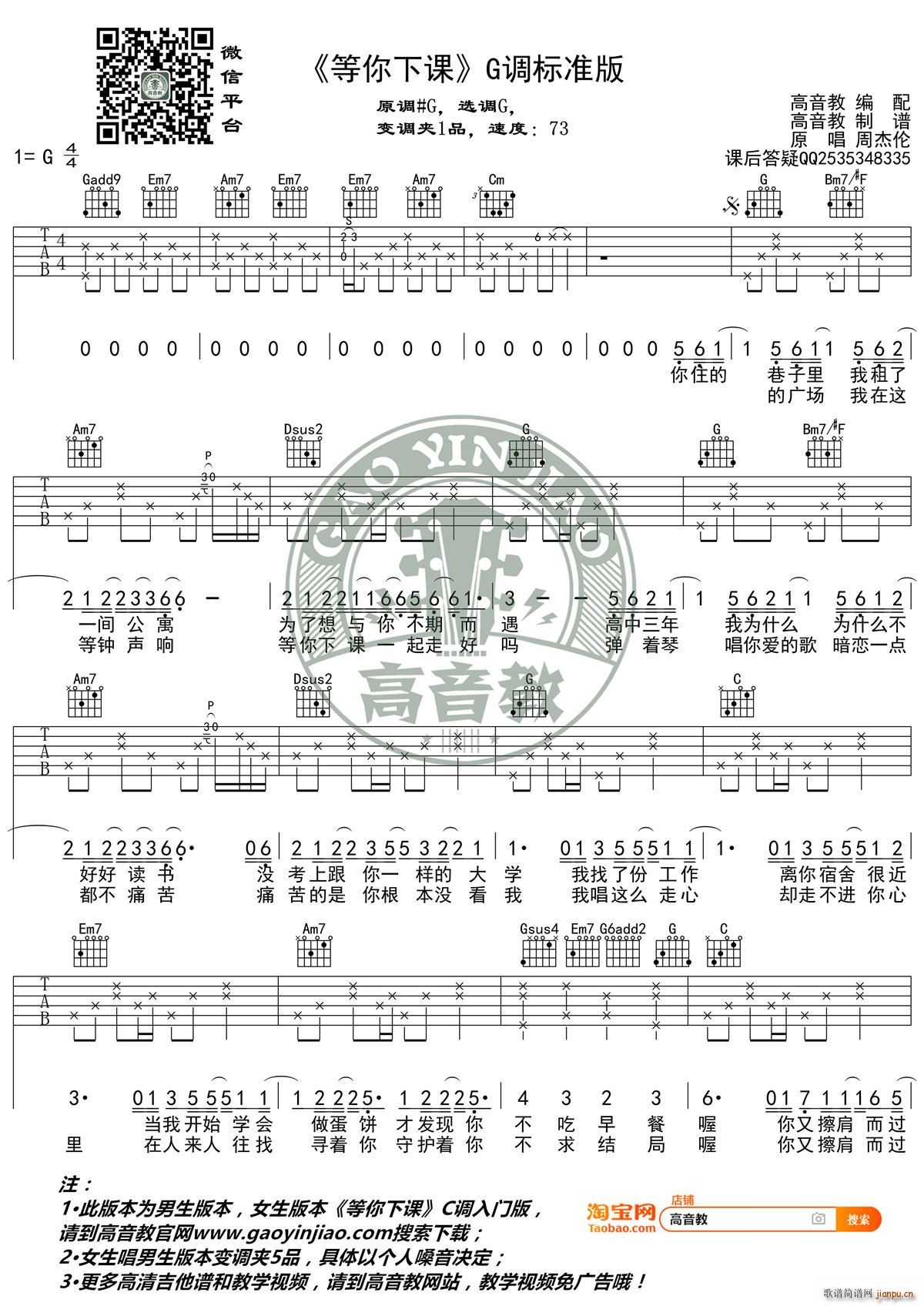 公众号:绵羊乐谱 《等你下课》 G调标准高清版 高音教编配免费弹唱吉他谱_六线谱/词曲:周杰伦 点击: 1000 图片可能经过缩放,手机长按或点开后长按保存,电脑鼠标右键保存. (网络) 公众号:绵羊乐谱 | 官方QQ群:978773290 不吃独食,学会分享!本文链接:http://www.shaomingyang.com/btb/34292.html 转载请标明出处,尊重原创(๑╹◡╹)ノ。如信息有误或版权疑问,请通过网站底部联系我们会第一时间处理,感谢理解支持(◕ᴗ◕✿)!