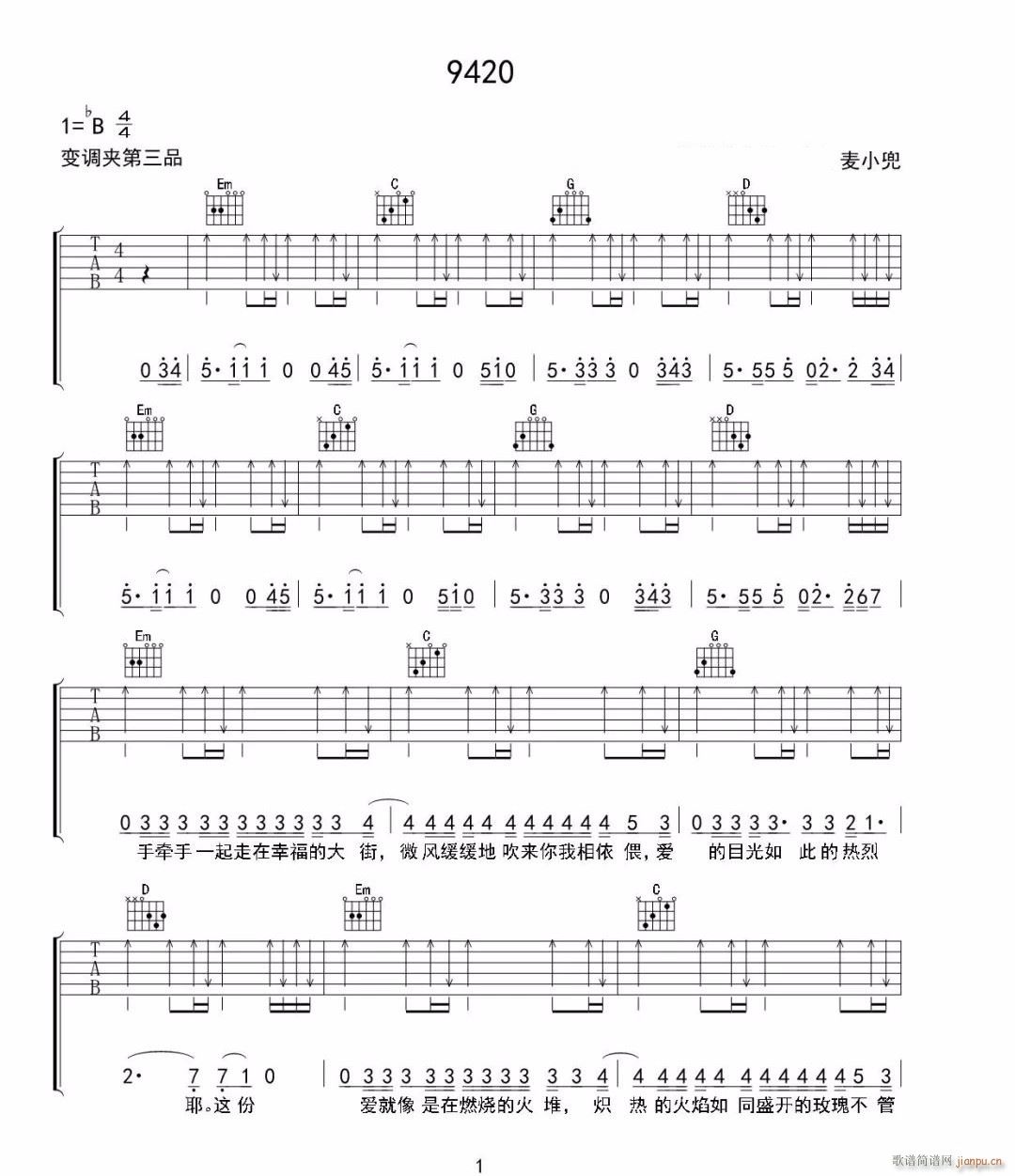 公众号:绵羊乐谱 9420 ( C调指法扫弦版编配) 免费弹唱吉他谱_六线谱/词曲:麦小兜 点击: (网络) 公众号:绵羊乐谱 | 官方QQ群:978773290 不吃独食,学会分享!本文链接:http://www.shaomingyang.com/btb/34306.html 转载请标明出处,尊重原创(๑╹◡╹)ノ。如信息有误或版权疑问,请通过网站底部联系我们会第一时间处理,感谢理解支持(◕ᴗ◕✿)!