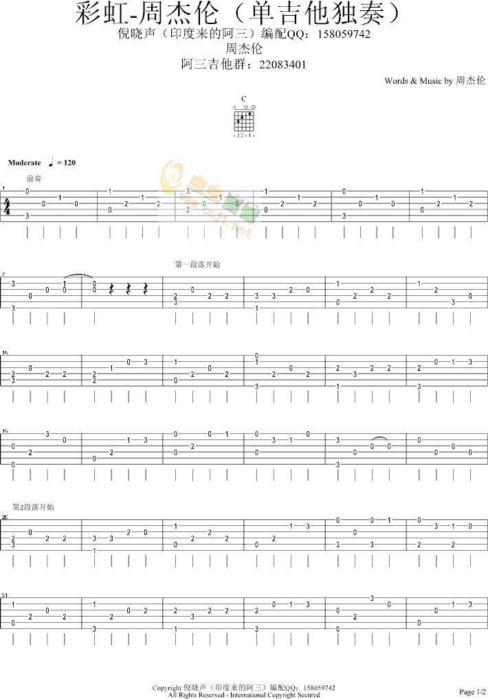 公众号:绵羊乐谱 彩虹-周杰伦(单吉他独奏)免费弹唱吉他谱_六线谱/词曲:周杰伦印度来的阿三点击: 1000 图片可能经过缩放,手机长按或点开后长按保存,电脑鼠标右键保存. (网络) 公众号:绵羊乐谱 | 官方QQ群:978773290 不吃独食,学会分享!本文链接:http://www.shaomingyang.com/btb/34307.html 转载请标明出处,尊重原创(๑╹◡╹)ノ。如信息有误或版权疑问,请通过网站底部联系我们会第一时间处理,感谢理解支持(◕ᴗ◕✿)!