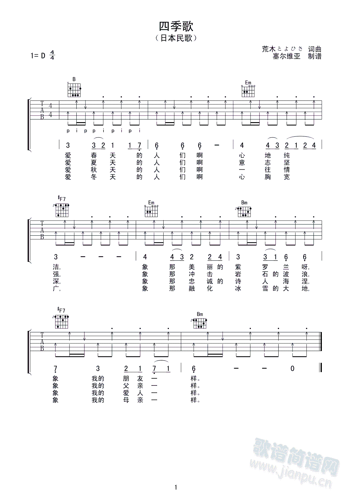 公众号:绵羊乐谱 四季歌免费弹唱吉他谱_六线谱/词曲:塞尔维亚制谱高清制作,欢迎下载使用点击: 1000 图片可能经过缩放,手机长按或点开后长按保存,电脑鼠标右键保存. (塞尔维亚) 公众号:绵羊乐谱 | 官方QQ群:978773290 不吃独食,学会分享!本文链接:http://www.shaomingyang.com/btb/34311.html 转载请标明出处,尊重原创(๑╹◡╹)ノ。如信息有误或版权疑问,请通过网站底部联系我们会第一时间处理,感谢理解支持(◕ᴗ◕✿)!