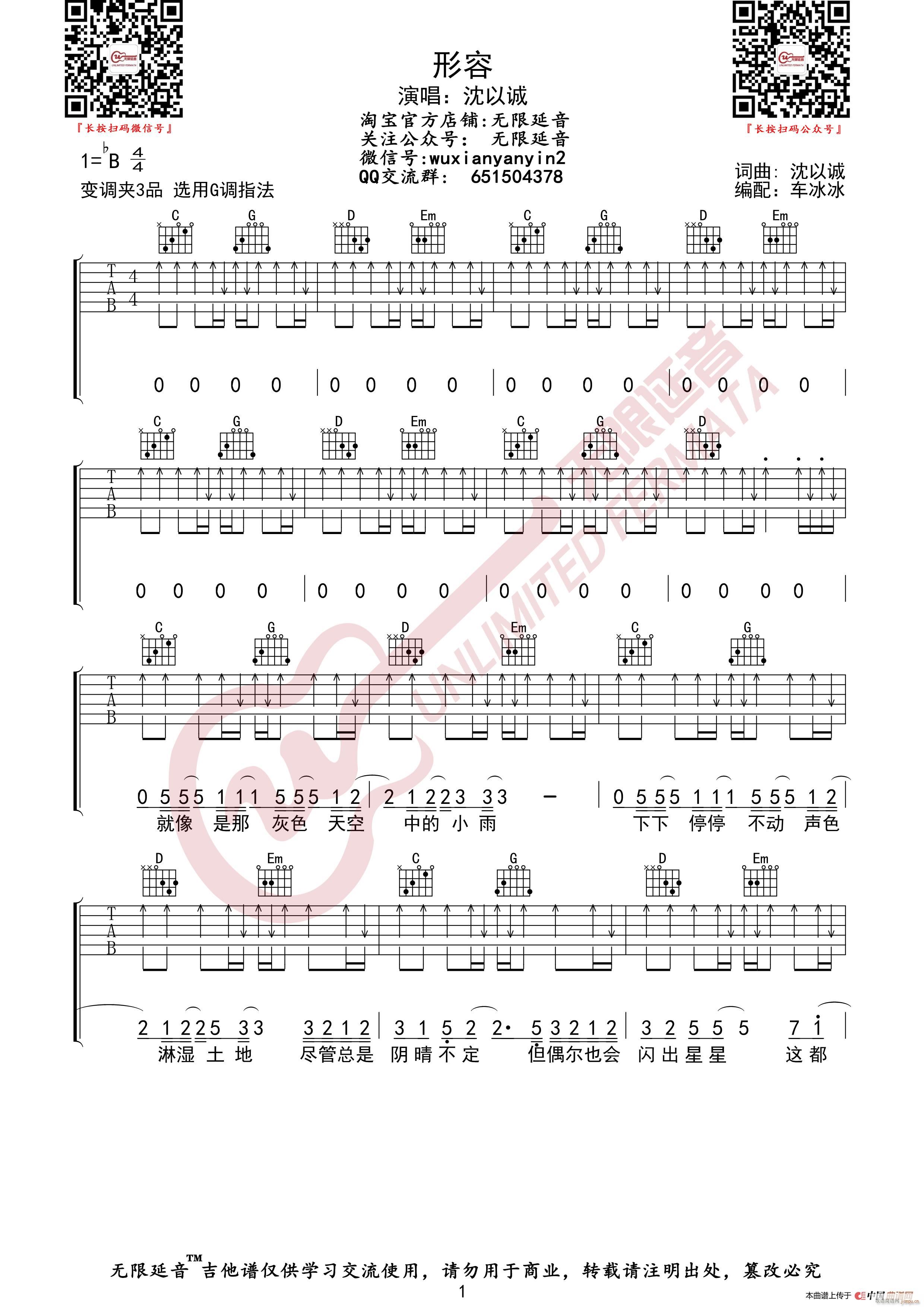 公众号:绵羊乐谱 沈以诚 形容 (无限延音编配) 免费弹唱吉他谱_六线谱/词曲: 点击: (网络) 公众号:绵羊乐谱 | 官方QQ群:978773290 不吃独食,学会分享!本文链接:http://www.shaomingyang.com/btb/34360.html 转载请标明出处,尊重原创(๑╹◡╹)ノ。如信息有误或版权疑问,请通过网站底部联系我们会第一时间处理,感谢理解支持(◕ᴗ◕✿)!