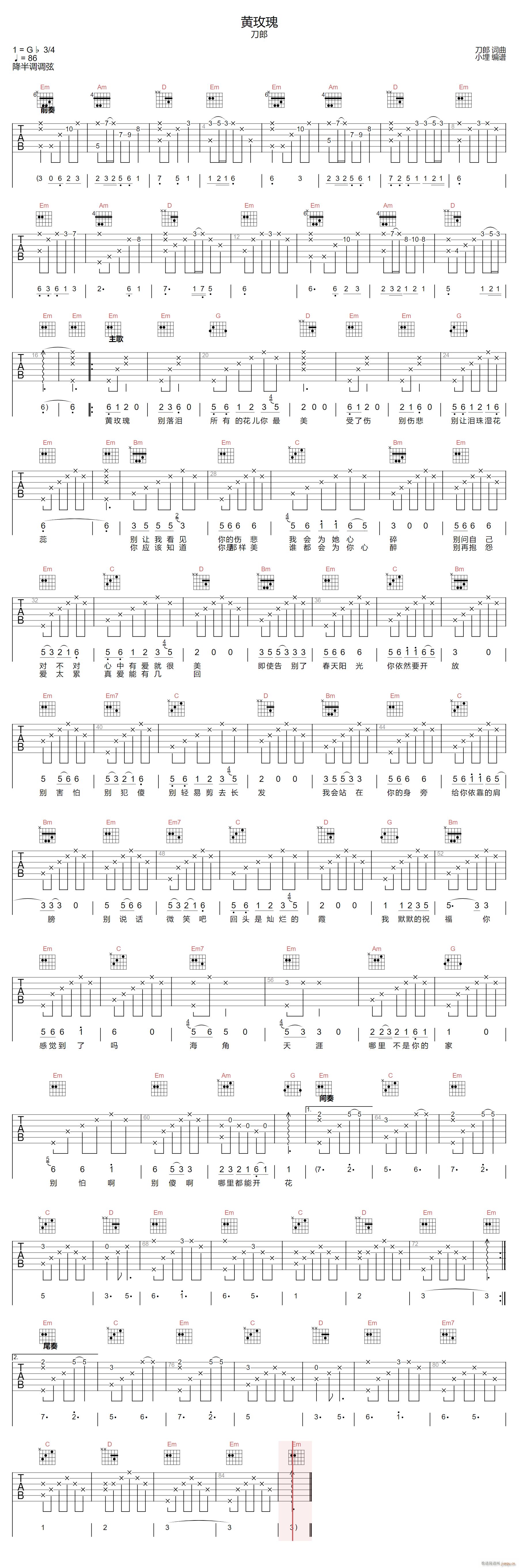 公众号:绵羊乐谱 黄玫瑰 ( G调指法原版编配) 免费弹唱吉他谱_六线谱/词曲:刀郎 点击: (小埋) 公众号:绵羊乐谱 | 官方QQ群:978773290 不吃独食,学会分享!本文链接:http://www.shaomingyang.com/btb/34366.html 转载请标明出处,尊重原创(๑╹◡╹)ノ。如信息有误或版权疑问,请通过网站底部联系我们会第一时间处理,感谢理解支持(◕ᴗ◕✿)!